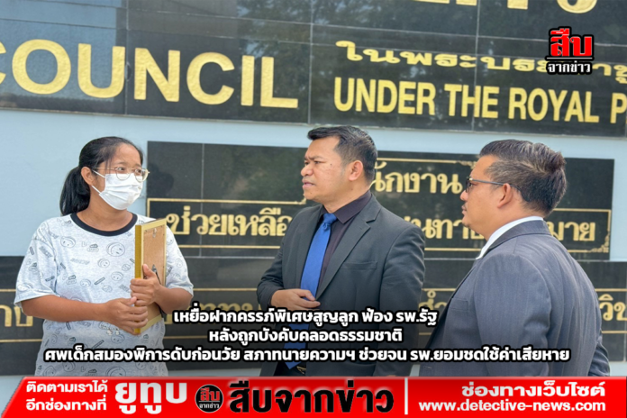 หญิงฝากครรภ์พิเศษร้องทุกข์ หลังโรงพยาบาลรัฐปฏิเสธผ่าคลอด อ้างไม่มีวิสัญญีแพทย์ บังคับให้คลอดเองจนลูกสมองขาดออกซิเจน เสียชีวิตในวัยเพียง 1 ขวบเศษ สภาทนายความฯ เข้าช่วยเหลือทางกฎหมาย จนศาลไกล่เกลี่ยให้โรงพยาบาลยอมชดใช้ค่าเสียหาย