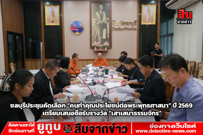 วันที่ 23 ธันวาคม 2568 เวลา 13.30 น. ที่ห้องประชุมพระรักษาเทพ ชั้น 2 ศาลากลางจังหวัดชลบุรี พระชลธารวชิรคุณ รองเจ้าคณะจังหวัดชลบุรี เป็นประธานการประชุม คัดเลือกผู้ทำคุณประโยชน์ต่อพระพุทธศาสนาของจังหวัดชลบุรี ประจำปี พ.ศ. 2569 เพื่อพิจารณากลั่นกรองผู้สมควรได้รับการเสนอชื่อเข้ารับรางวัลพระราชทาน “เสาเสมาธรรมจักร” ตามแนวทางของกรมการศาสนา กระทรวงวัฒนธรรม