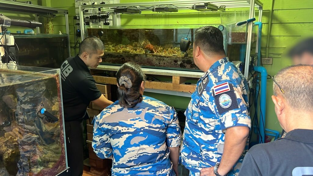 กระทั่ง เจ้าหน้าที่ตำรวจได้ร่วมกับเจ้าหน้าที่กรมทรัพยากรทางทะเลและชายฝั่ง เข้าจับกุมผู้ต้องหาตามหมายจับ และเข้าตรวจค้นบ้านพักของผู้ต้องหาในพื้นที่เขตหนองแขม กรุงเทพมหานคร จากการตรวจค้นพบว่าผู้ต้องหาได้ครอบครองปะการังทะเลซึ่งเป็นสัตว์ป่าคุ้มครองเลี้ยงไว้ภายในบ้าน ทั้งได้ตรวจพบ ดอกไม้ทะเล และซากปะการัง เป็นจำนวนทั้งสิ้นกว่า 200 ชิ้น คิดเป็นมูลค่าความเสียหายจำนวนมาก เจ้าหน้าที่ตำรวจจึงทำการตรวจยึดไว้เป็นของกลาง ก่อนนำปะการังทะเล ดอกไม้ทะเล และซากปะการังดังกล่าว ส่งมอบให้กรมทรัพยากรทางทะเลและชายฝั่ง กระทรวงทรัพยากรธรรมชาติและสิ่งแวดล้อม เพื่อดูแลตามขั้นตอน ก่อนควบคุมตัวผู้ต้องหานำส่งพนักงานสอบสวน กก.1 บก.ปทส. เพื่อดำเนินคดีตามกฎหมาย