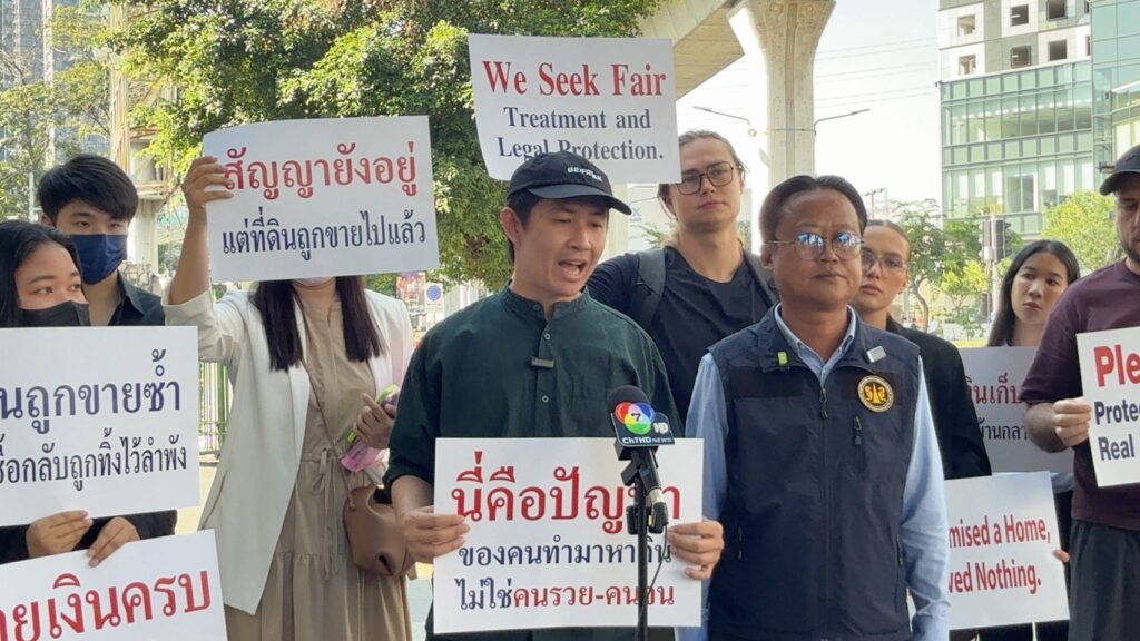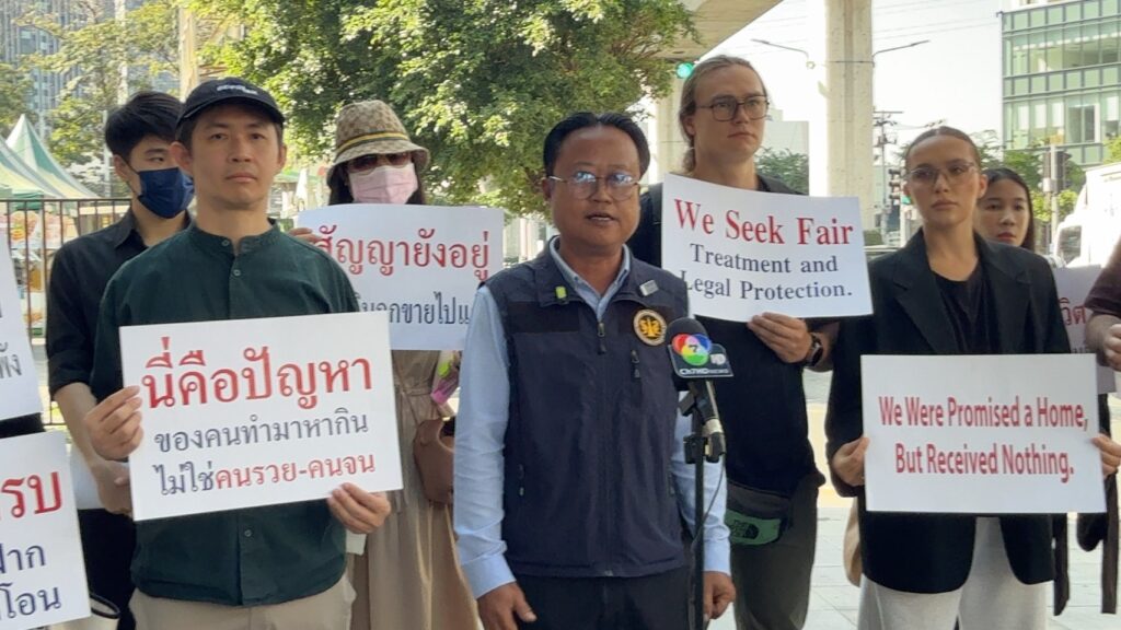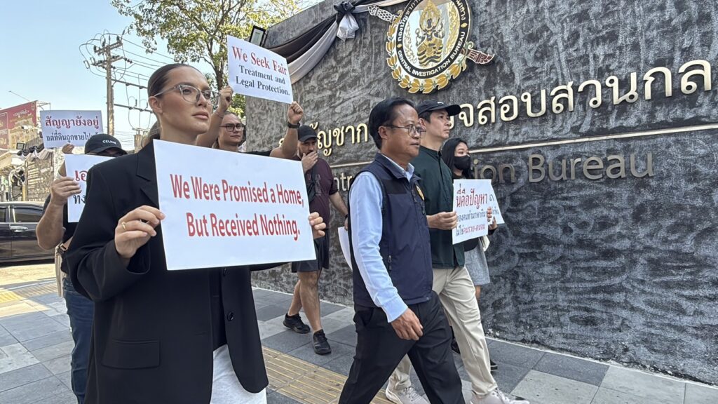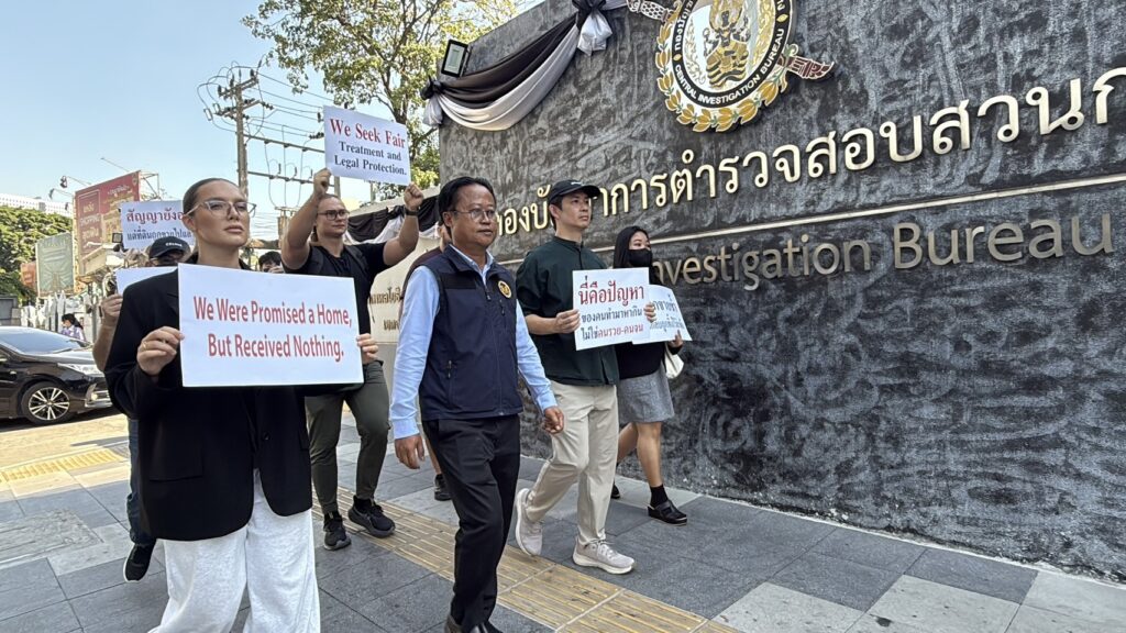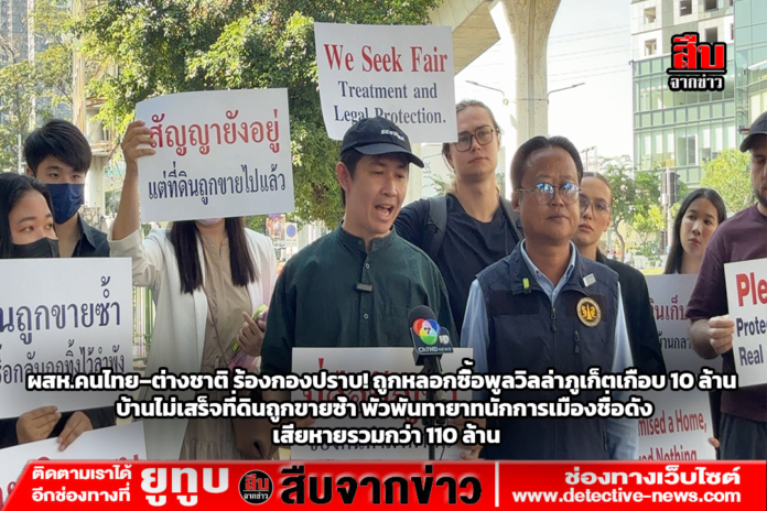 วันที่ 24 ธันวาคม 2568 เวลา 10.00 น. ที่ศูนย์รับแจ้งความกองบัญชาการสอบสวนกลาง ถนนพหลโยธิน นายชาญชัย ฉายบุ ที่ปรึกษามูลนิธิรณรงค์ทวงคืนความยุติธรรมในสังคม พาผู้เสียหายชาวไทยและชาวต่างชาติรวม 10 ราย จากจังหวัดภูเก็ต เข้าแจ้งความต่อพนักงานสอบสวนกองบังคับการปราบปรามการคุ้มครองผู้บริโภค (บก.ปคบ.) หลังถูกหลอกลงทุนในโครงการบ้านพูลวิลล่าหรู ที่ไม่เป็นไปตามสัญญา สร้างไม่เสร็จ และพบมีการขายที่ดินซ้ำให้บุคคลอื่น สร้างความเสียหายรวมกว่า 110 ล้านบาท