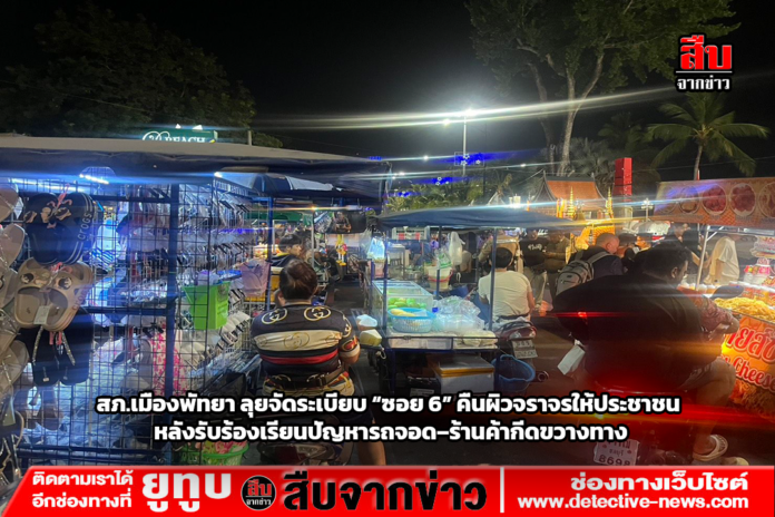พัทยา | วันที่ 23 ธันวาคม 2568 — หลังประชาชนร้องเรียนผ่านเพจ ฉลามนิวส์ ถึงปัญหาการจอดรถและตั้งร้านขายของกีดขวางการจราจรบริเวณ ซอย 6 ถนนเลียบชายหาดพัทยา ซึ่งสร้างความเดือดร้อนและไม่ปลอดภัยในช่วงเวลากลางคืน