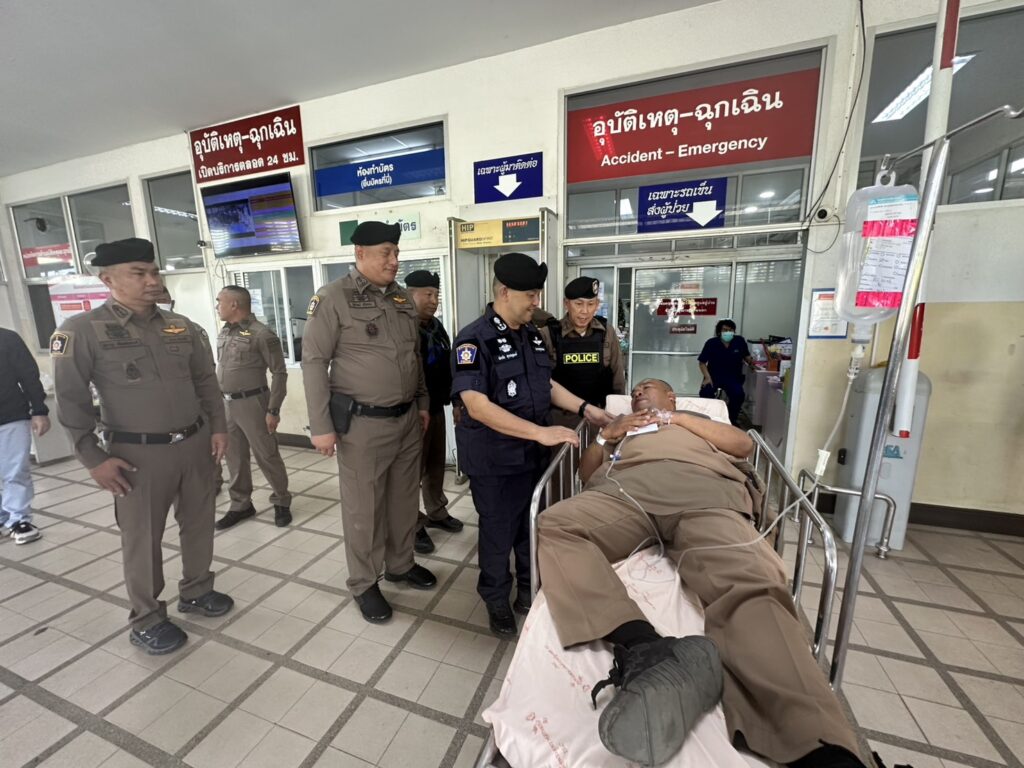 ได้เร่งเดินทางลงพื้นที่เกิดเหตุ เพื่อเยี่ยมและให้กำลังใจ ด.ต.ขจรเกียรติ กันหากุลวัฒน์ อายุ 46 ปี ตำแหน่ง ผบ.หมู่ สส.สภ.โคกสูง หลังได้รับบาดเจ็บจากเหตุลูกกระสุน BM21 ตกในพื้นที่