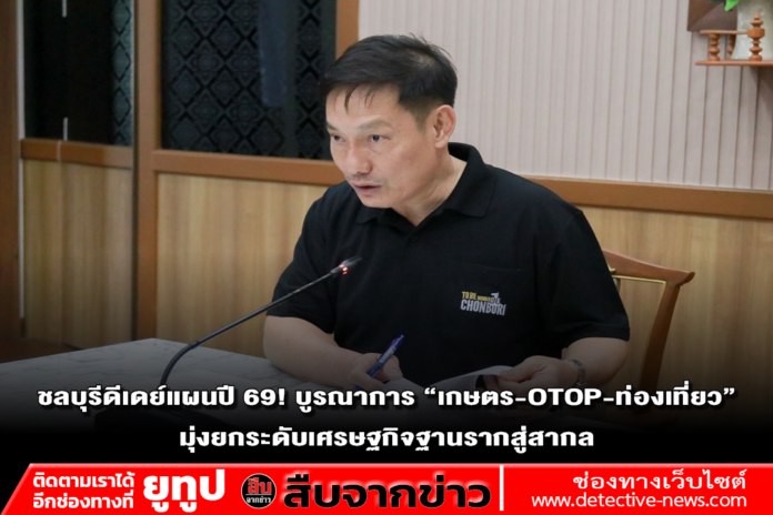24 ธันวาคม 2568 เวลา 10.00 น. ที่ห้องประชุมพระรักษาเทพ ศาลากลางจังหวัดชลบุรี นายชัยพร แพภิรมย์รัตน์ รองผู้ว่าราชการจังหวัดชลบุรี เป็นประธานประชุมคณะทำงานขับเคลื่อนเศรษฐกิจฐานรากและประชารัฐ นัดแรกของปีงบประมาณ 2569 เพื่อวางโรดแมปสร้างรายได้ให้ชุมชนอย่างเป็นรูปธรรม