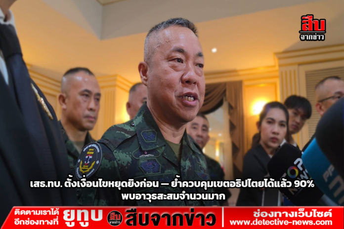 25 ธันวาคม 2568 — ที่กองบัญชาการกองทัพบก พลเอกชัยพฤกษ์ ด้วงประพัฒน์ เสนาธิการทหารบก กล่าวถึงสถานการณ์ชายแดนไทย–กัมพูชา ว่าการปฏิบัติการของกองทัพยังเป็นไปตามเป้าหมายที่วางไว้และจะเร่งดำเนินการในส่วนที่เหลือให้แล้วเสร็จโดยเร็วที่สุด