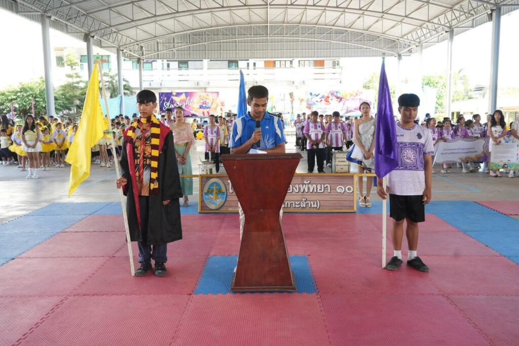 บรรยากาศภายในงานเป็นไปอย่างคึกคัก เต็มไปด้วยเสียงเชียร์และรอยยิ้มจากนักเรียน ครู ผู้ปกครอง และแขกผู้มีเกียรติที่มาร่วมให้กำลังใจ ท่ามกลางบรรยากาศแห่งความสนุกสนานและมิตรภาพในสปิริตของการแข่งขันกีฬาอย่างแท้จริง.
