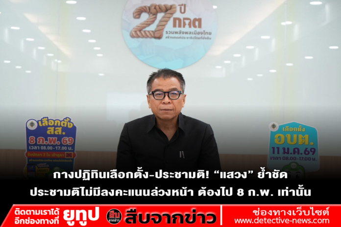นายแสวง ยังกล่าวว่า การเลือก สส มีวันลงคะแนน 2 วัน คือ วันลงคะแนนล่วงหน้า ในวันที่ 1 ก.พ. 69 ที่ต้องลงทะเบียน และวันลงคะแนนในวันเลือกตั้งวันที่ 8 ก.พ. 69 ที่ไม่ต้องลงทะเบียน