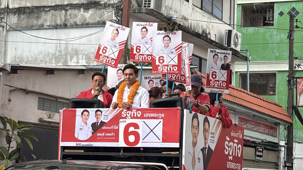 ชลบุรี – บรรยากาศการเลือกตั้ง ส.ส. ชลบุรี ทวีความเข้มข้นขึ้นทันที เมื่อสองขุนพลจากพรรคเพื่อไทย นำโดย นายชาญยุทธ เฮงตระกูล และ นายรัฐกิจ เฮงตระกูล ประกาศความพร้อมแบบเกินร้อยหลังจับสลากได้หมายเลขประจำตัว ลุยขึ้นรถแห่กระจายเสียงเปิดนโยบาย “ยกเครื่องประเทศไทย” ปักหมุดพื้นที่นาเกลือ พัทยา และจอมเทียน ท่ามกลางการต้อนรับที่คึกคัก