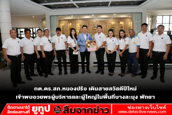 ชลบุรี คณะกรรมการตรวจสอบและติดตามการบริหารงานตำรวจ สถานีตำรวจภูธรหนองปรือ (กต.ตร.สภ.หนองปรือ) ได้จัดกิจกรรม เดินสายสวัสดีปีใหม่ เข้าพบอวยพรผู้บริหารและผู้ใหญ่ที่เคารพในพื้นที่อำเภอบางละมุงและเมืองพัทยา เพื่อแสดงความเคารพ ความปรารถนาดี และกระชับความร่วมมือระหว่างภาคประชาชน หน่วยงานปกครอง และเจ้าหน้าที่ตำรวจ