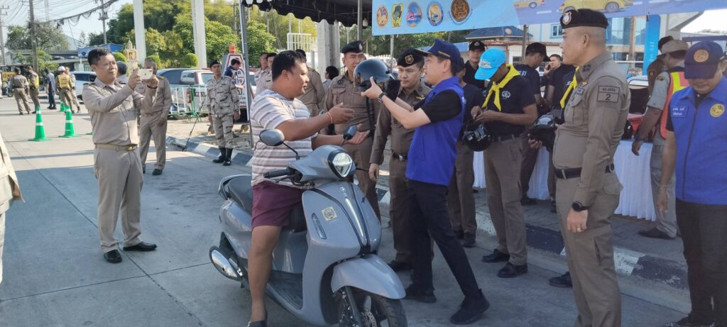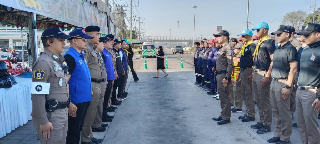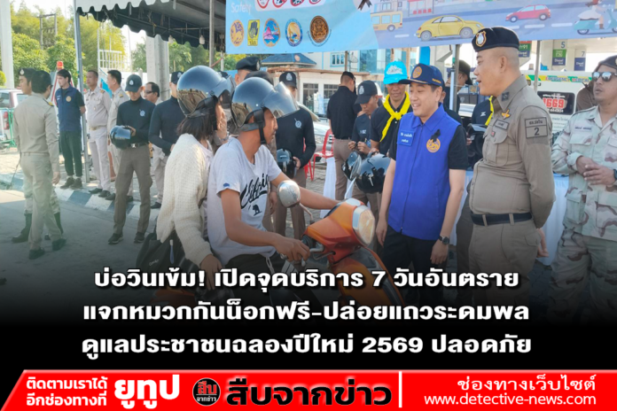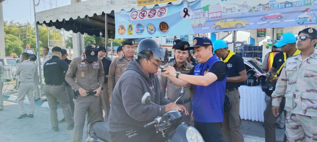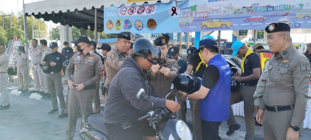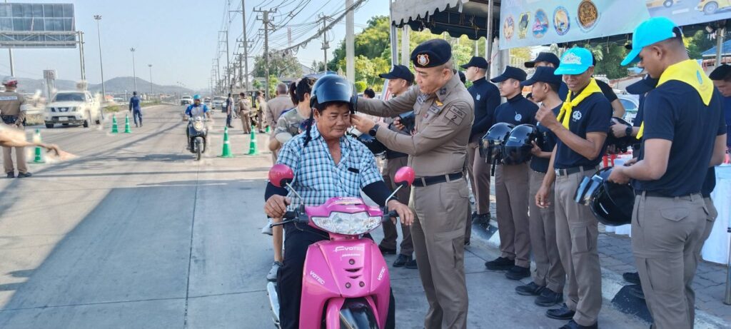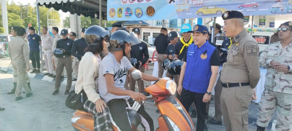 เมื่อเวลา 09.00 น. 30 ธ.ค. 2568 ที่หน้าปั๊มน้ำมันปตท.เสาสูง หมู่ 6 ตำบลบ่อวิน อำเภอศรีราชา ริมถนนสาย331 ขาเข้าบ่อวิน นายวีกิจ มานะโรจน์กิจ นายอำเภอศรีราชา เป็นประธานในการเปิดจุดตรวจจุดบริการประชาชนป้องกัน-ลดอุบัติเหตุทางถนน 7 วันอันตราย ช่วงเทศกาลปีใหม่2569 โดยมี พ.ต.อ. กฤศ ธิติทัศนะ ผกก.สภ. บ่อวิน ร่วมในพิธีเปิดและแจกหมวกกันน็อคฟรีแก่ผู้ที่ขี่รถจักรยานยนต์ที่ไม่สวมหมวกมาผ่านด่าน7วันอันตรายในครั้งนี้ทั้งตักเตือนขี่รถจักรยานยนต์ทุกครั้งให้สวมหมวกเพื่อความปลอดภัย