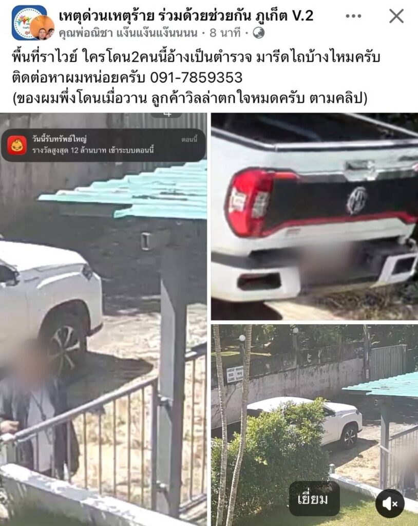 พฤติการณ์ มื่อวันที่ 28 ธันวาคม พ.ศ. 2568 เวลาประมาณ 13.55 น. เจ้าหน้าที่ตำรวจชุดจับกุม ออกตรวจในเขตพื้นที่รับผิดชอบ ตามมาตรการป้องกันและปราบปรามอาชญากรรมและการรักษาความสงบเรียบร้อย ต่อมาได้รับแจ้งจากแหล่งข่าว (ไม่ประสงค์ออกนาม) ว่ามีรถยนต์นั่งส่วนบุคคล ยี่ห้อ MG สีขาว เดินทางออกจากจังหวัดภูเก็ตมุ่งหน้าเข้ากรุงเทพมหานคร โดยมี บุคคลตามหมายจับในคดี “ร่วมกันพยายามฉ้อโกง โดยแสดงตนเป็นคนอื่น” โดยคาดว่าจะผ่านพื้นที่จังหวัดชุมพรต่อมา เจ้าหน้าที่ได้พบรถต้องสงสัยบริเวณ ถนนทางหลวงหมายเลข 4 (ถนนเพชรเกษม) กม.473 ขาเข้า กทม. ตำบลท่าข้าม อำเภอท่าแซะ จังหวัดชุมพร จึงส่งสัญญาณให้หยุดรถเพื่อตรวจสอบพบผู้ขับขี่คือ นายปริภัทร และมี นายสุริยา นั่งโดยสารอยู่ข้างหน้าจากการตรวจสอบเอกสารประจำตัวและข้อมูลในระบบสารสนเทศสำนักงานตำรวจแห่งชาติ พบว่า บุคคลทั้งสองเป็นผู้ต้องหาตามหมายจับในคดีดังกล่าวจริง เจ้าหน้าที่จึงประสานไปยังพนักงานสอบสวน สถานีตำรวจภูธรฉลอง จังหวัดภูเก็ต ซึ่งยืนยันว่า หมายจับยังมีผลบังคับใช้ และอยู่ระหว่างติดตามตัวผู้ต้องหาทั้งสองราย เจ้าหน้าที่จึงแสดงหมายจับให้ผู้ต้องหาทั้งสองทราบและสอบถามข้อเท็จจริง โดยทั้งสอง ให้การยอมรับว่าเป็นบุคคลตามหมายจับและยังไม่เคยถูกจับกุมในคดีนี้มาก่อน เจ้าหน้าที่จึงควบคุมตัวไปยัง หน่วยบริการตำรวจทางหลวงท่าแซะ เพื่อจัดทำบันทึกการจับกุม ก่อนนำตัวส่งพนักงานสอบสวน สภ.ฉลอง จังหวัดภูเก็ต เพื่อดำเนินคดีตามกฎหมายต่อไป โดยก่อนถูกออกหมายจับ ผู้ต้องหาทั้งสองได้ แอบอ้างตนเป็นเจ้าหน้าที่ตำรวจยศสูง เข้าไปยังพื้นที่ ตำบลราไวย์ จังหวัดภูเก็ต และใช้วิธีการหลอกลวง รีดไถเงินจากนักท่องเที่ยวชาวต่างชาติ โดยอ้างตนเป็นเจ้าหน้าที่ขอรับเงินเพื่อนำไปช่วยเหลือเจ้าหน้าที่ตำรวจและทหารที่ปฏิบัติภารกิจในพื้นที่ชายแดน โดยออกขอรับเงินจากนักท่องเที่ยวที่เข้าพักในวิลล่าการกระทำดังกล่าวสร้างความเสียหายและความเดือดร้อนแก่นักท่องเที่ยว จึงมีการเข้าแจ้งความร้องทุกข์ต่อพนักงานสอบสวน จนนำไปสู่การออกหมายจับและการติดตามจับกุมในครั้งนี้