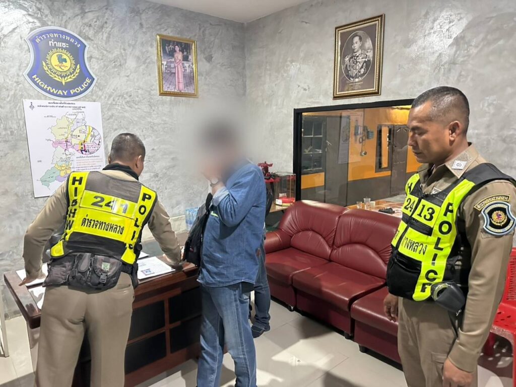สถานที่จับกุม หน่วยบริการตำรวจทางหลวงท่าแซะ ทล.4 ( เพชรเกษม ) กม.478+200 ต.ท่าข้าม อ.ท่าแซะ จ.ชุมพร