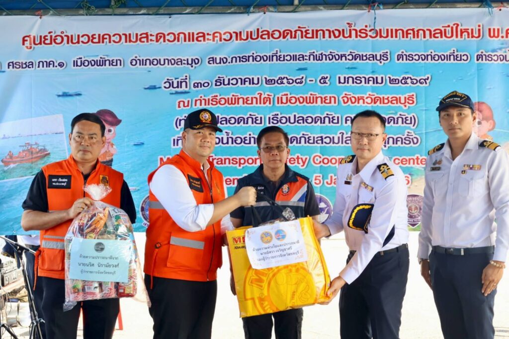 วันนี้ (30 ธันวาคม 2568) เวลา 10:00 น. ที่ท่าเทียบเรือพัทยาใต้ เมืองพัทยา อำเภอบางละมุง จังหวัดชลบุรี กรมเจ้าท่า จัดพิธีเปิด “ศูนย์อำนวยความสะดวกและความปลอดภัยทางน้ำร่วมเทศกาลปีใหม่ พ.ศ. 2569” โดยมี นายกริชเพชร ชัยช่วย อธิบดีกรมเจ้าท่า เป็นประธานในพิธี พร้อมด้วย นายอิสรา เจริญชาศรี รองผู้ว่าราชการจังหวัดชลบุรี และผู้แทนหน่วยงานที่เกี่ยวข้องเข้าร่วมอย่างพร้อมเพรียง
