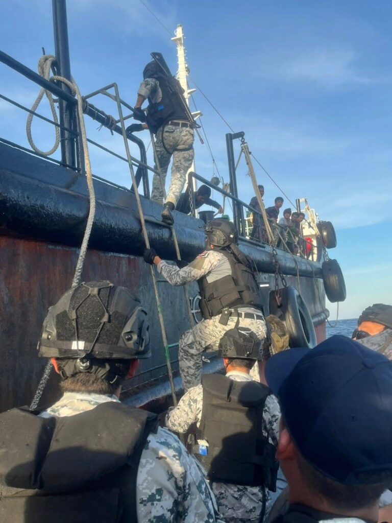 ผลการตรวจสอบเบื้องต้นพบการกระทำผิดตามพระราชบัญญัติการเดินเรือในน่านน้ำไทย พ.ศ.2456 และพระราชกำหนดการบริหารจัดการการทำงานของคนต่างด้าว พ.ศ.2560 โดยมีแรงงานต่างด้าวทำงานผิดกฎหมาย จำนวน 5 คน ประกอบไปด้วยสัญชาติเมียนมา 1 คน สัญชาติกัมพูชา 4 คน การขนส่งน้ำมันเชื้อเพลิงที่อาจมีความเชื่อมโยงกับการขนส่งยุทธปัจจัยไปประเทศเพื่อนบ้าน ซึ่งทั้งหมดอยู่ระหว่างการสอบสวนขยายผล เพื่อดำเนินคดีกับผู้ที่เกี่ยวข้องอย่างถึงที่สุด
