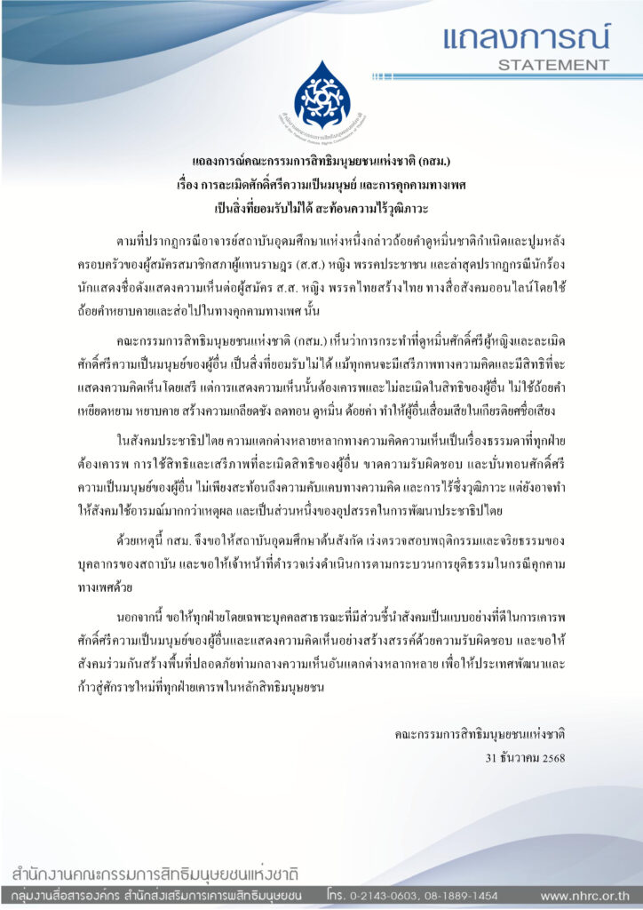 แถลงการณ์คณะกรรมการสิทธิมนุษยชนแห่งชาติ (กสม.)