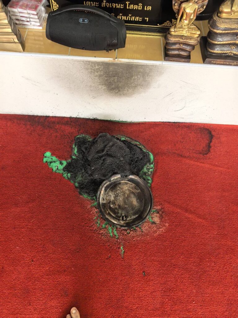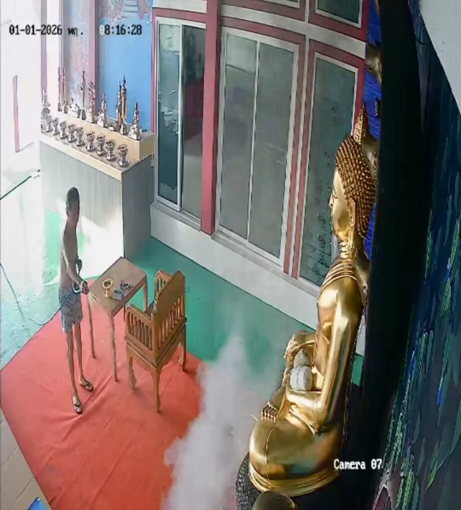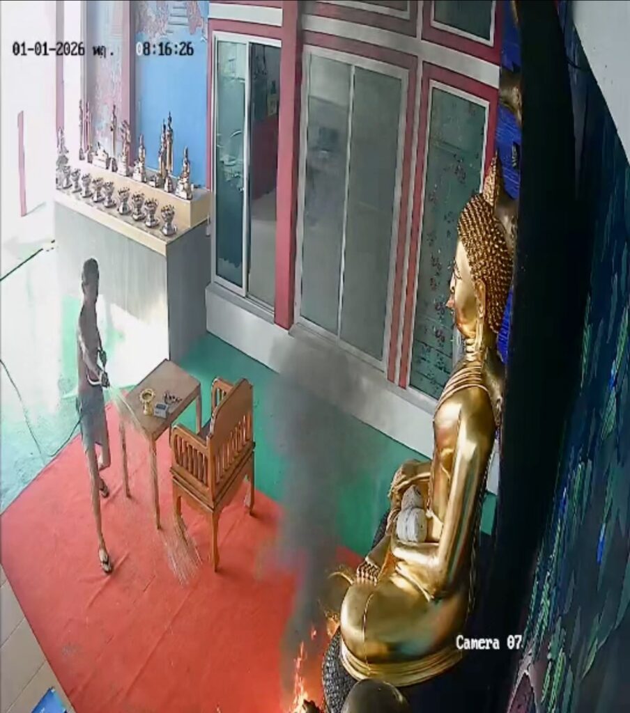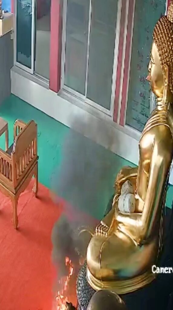 เมื่อวันที่ 2 ม.ค.2569 นายวิชัย วงศ์สินสังวร หรือ “เอี่ยม บางแค” ผู้บริหารระดับสูงของสำนักข่าวแห่งหนึ่ง ในซอยทุ่งมังกร 10 ได้นำคลิปจากกล้องวงจรปิดเหตุการณ์เมื่อเช้าวันขึ้นปีใหม่ (1 มกราคม) มาเปิดเผยต่อสื่อมวลชน โดยเป็นภาพเหตุการณ์ขณะไฟลุกไหม้บริเวณพานธูปเทียนหน้าองค์พระพุทธรูปขนาดใหญ่ ซึ่งเปลวไฟได้ตกลงบนพื้นพรมและไหม้อยู่นานกว่า 10 นาที แต่กลับไม่ลุกลามไปยังส่วนอื่นอย่างน่าเหลือเชื่อ