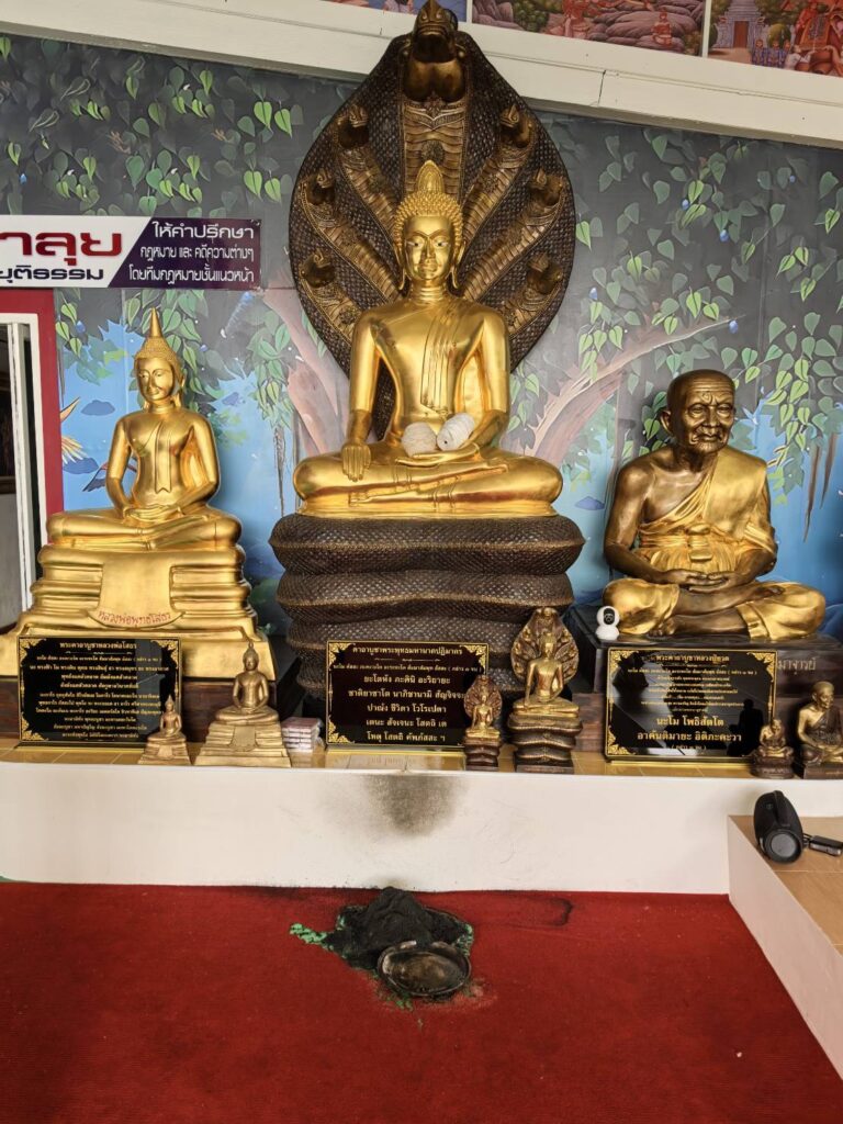 นายวิชัย เล่าว่า ตามปกติทุกเช้าตนจะจุดธูปเทียนกราบไหว้พระพุทธรูปศักดิ์สิทธิ์ที่ประดิษฐานอยู่หน้าสำนักงาน พร้อมเปิดเสียงบทสวดพุทธคุณเพื่อความเป็นสิริมงคล แต่เมื่อวาน(1 ม.ค.) ซึ่งเป็นวันขึ้นปีใหม่ วันเกิดเหตุหลังจากที่ตนจุดธูปเทียนวางบนพานทองเหลืองเสร็จ ตนได้ปลีกตัวเข้าไปทำธุระภายในสำนักงานเพียง 10 นาที