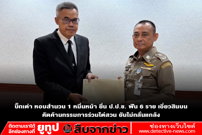 วันนี้ (5 ม.ค. 2569) พล.ต.ต.จรูญเกียรติ ปานแก้ว รองผู้บัญชาการตำรวจสอบสวนกลาง (รอง ผบช.ก.) พร้อมคณะพนักงานสอบสวน ได้นำสำนวนการสอบสวนและพยานหลักฐานสำคัญเข้ายื่นต่อคณะกรรมการป้องกันและปราบปรามการทุจริตแห่งชาติ (ป.ป.ช.) เพื่อให้ดำเนินการตามกฎหมายกับกลุ่มเจ้าหน้าที่รัฐและบุคคลที่เกี่ยวข้องกับการให้สินบนเพื่อแลกกับการช่วยเหลือทางคดี