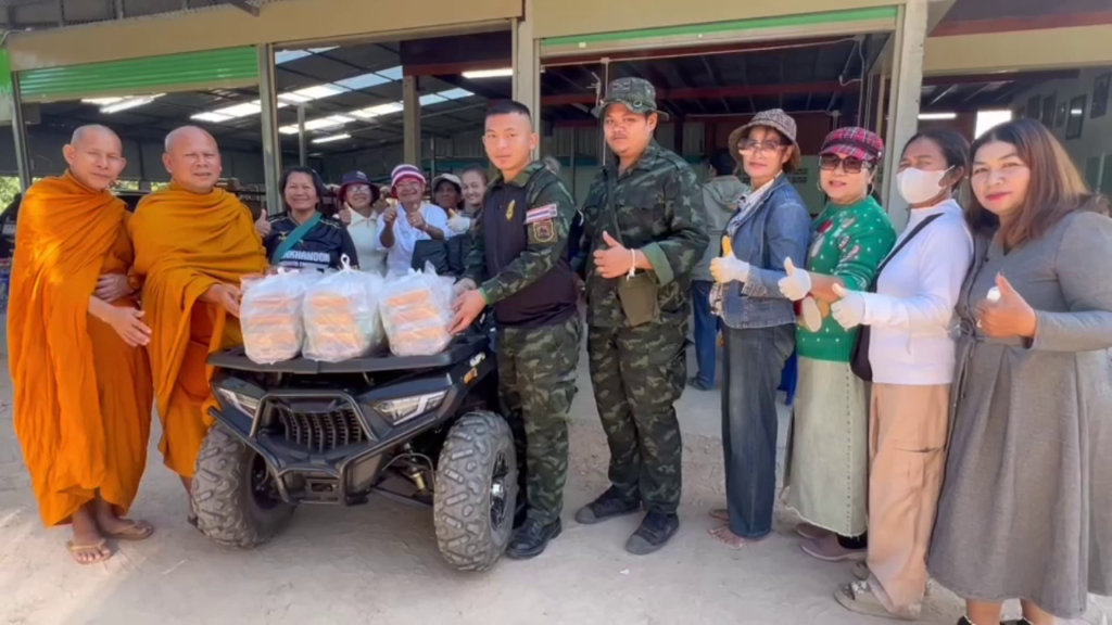 เมื่อวันที่ (4 ม.ค.69 )ที่บ้านโนนดู่ ต.บึงมะลู อ.กันทรลักษ์ จังหวัดศรีสะเกษ พระครูปลัดสิทธิชัย วิสุทโธ เจ้าอาวาสวัดกระทิง จ.จันทบุรี นำคณะจิตอาสาชาวจันทบุรี มอบเครื่องอุปโภคบริโภคและน้ำดื่ม ให้แก่ทหาร ตำรวจ ตชด . และทหารพราน ที่ปฎิบัติหน้าที่ในพื้นที่ชายแดนจังหวัดศรีสะเกษ และทำก๋วยเตี๋ยวผัดเส้นจันท์เลี้ยงทหาร ตำรวจ ตชด . และทหารพราน ด้วย ทั้งนี้เพื่อเป็นขวัญกำลังใจให้กับทหารตำรวจที่รักษาอธิปไตยตามแนวชายแดนจังหวัดศรีสะเกษ