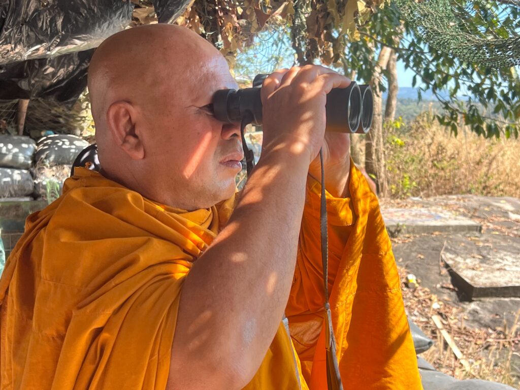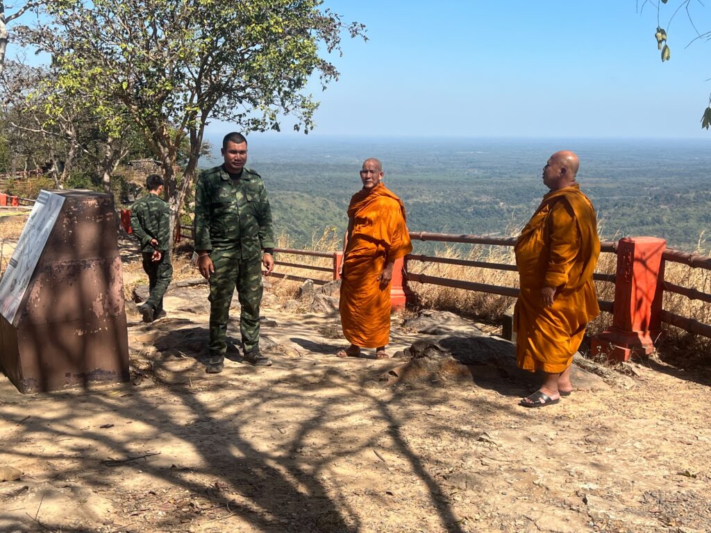 หลังจากนั้นพระครูปลัดสิทธิชัย ได้นำทีมงานลงพื้นที่ ผามออีแดงและพลาญหินบั้งไฟ ชายแดนกันทรลักษ์ จังหวัดศรีสะเกษ สำรวจร่องรอยความเสียหาย ที่เคยนำบังเกอร์ไปมอบให้แก่ทหาร ตำรวจ ตชด. ซึ่งยังคงสภาพดีสามารถช่วยชีวิต ทหารตำรวจ ให้มีความปลอดภัยจากเหตุการณ์ปะทะกันที่ผ่านมา นอกจากนี้ ยังพบความเคลื่อนไหว ทหารกัมพูชา หลบอยู่ในบังเกอร์ด้วย