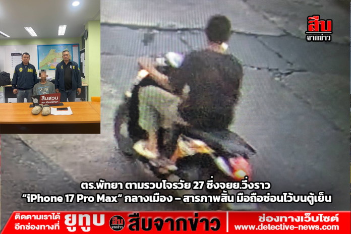 สืบเนื่องจากเมื่อวันที่ 29 ธันวาคม 2568 เวลา 07.30 น. น.ส.เนตรนภา ฮุงหวน ผู้เสียหายเข้าแจ้งความว่าขณะเดินคุยโทรศัพท์อยู่บริเวณซอยบงกช 8 หน้าซิตี้เซ็นเตอร์คอนโด เมืองพัทยา ได้มีชายคนร้ายขี่รถจักรยานยนต์เข้ามาประชิด ก่อนกระชากโทรศัพท์มือถือแล้วหลบหนีไปอย่างรวดเร็ว