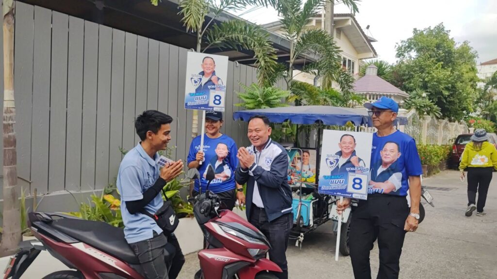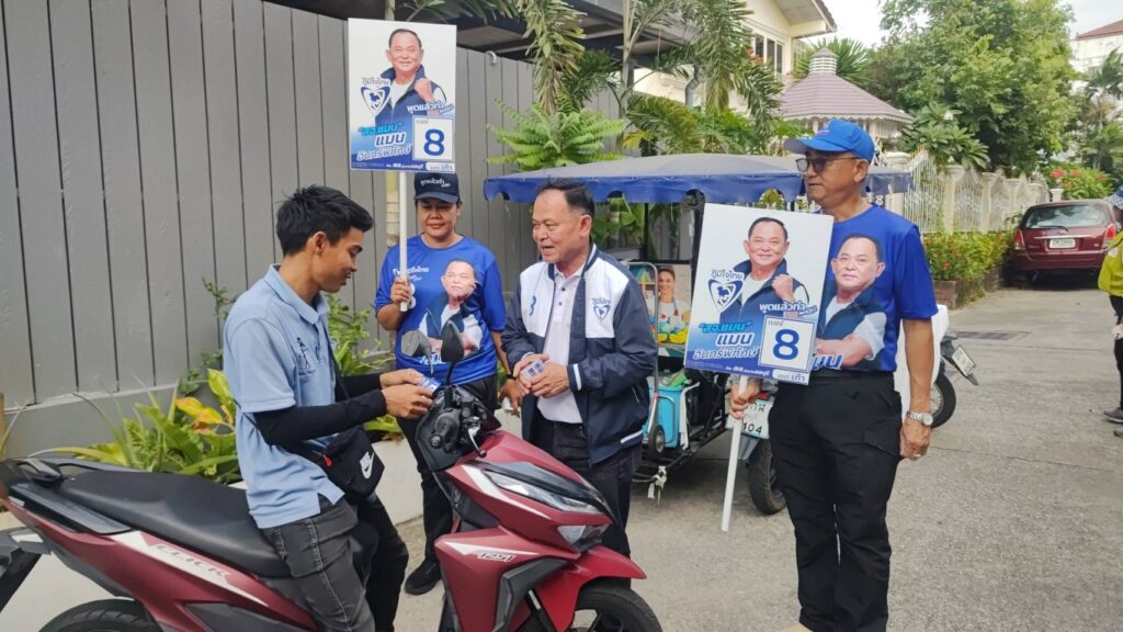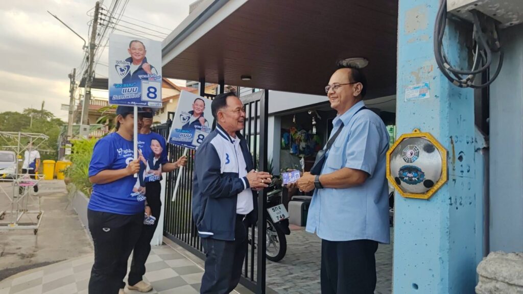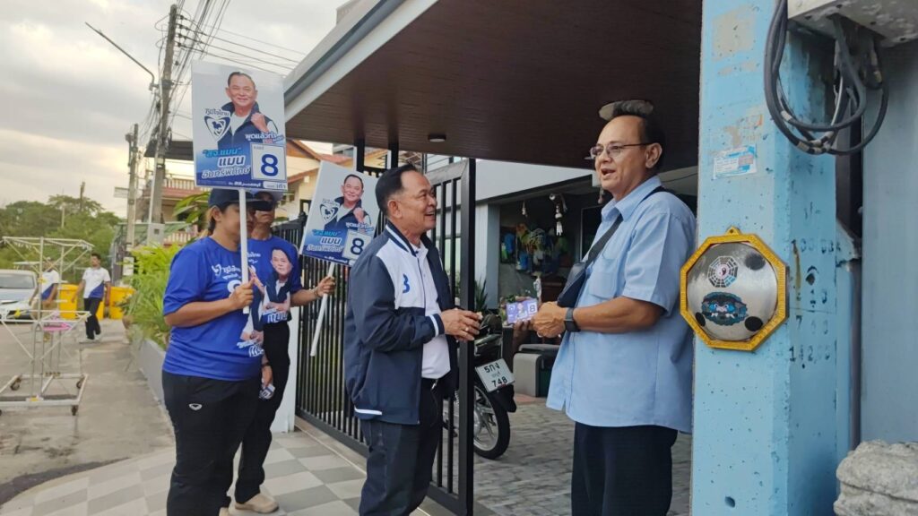 (6 ม.ค.69) นายแมน อินทร์พิทักษ์ ผู้สมัครรับเลือกตั้งสมาชิกสภาผู้แทนราษฎร จังหวัดชลบุรี เขต 9 พรรคภูมิใจไทย พร้อมทีมงาน ลงพื้นที่ซอยยูเมะ พัทยากลาง ม. 9 ต.หนองปรือ อ.บางละมุง จ.ชลบุรี เดินหน้าหาเสียงเชิงรุกแบบเคาะประตูบ้าน พบปะพูดคุยรับฟังปัญหาและความคิดเห็นของประชาชนอย่างใกล้ชิด ท่ามกลางบรรยากาศเป็นกันเอง