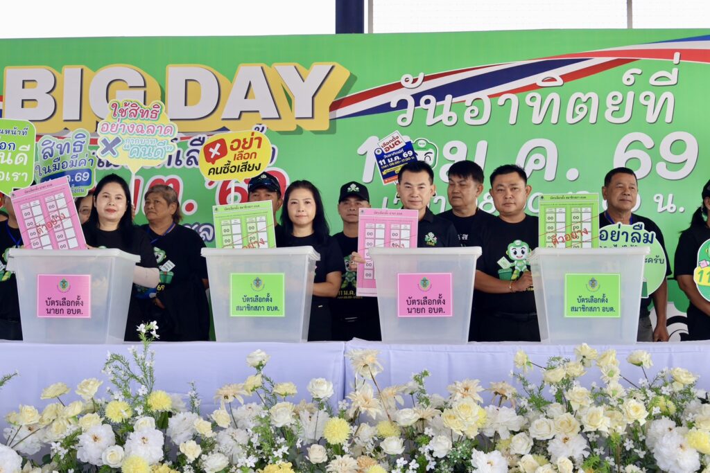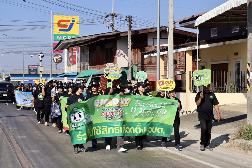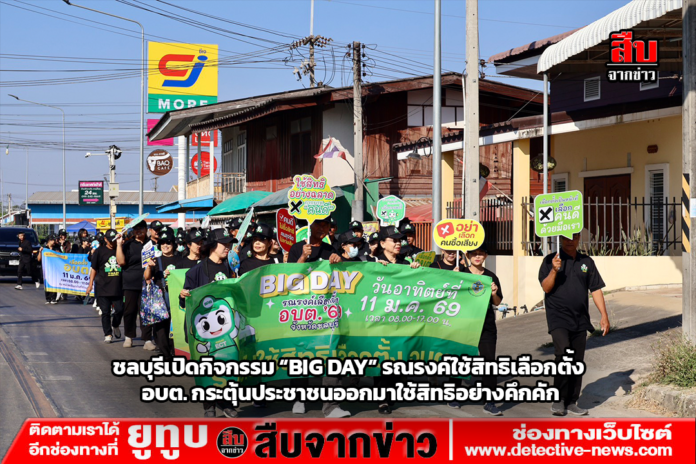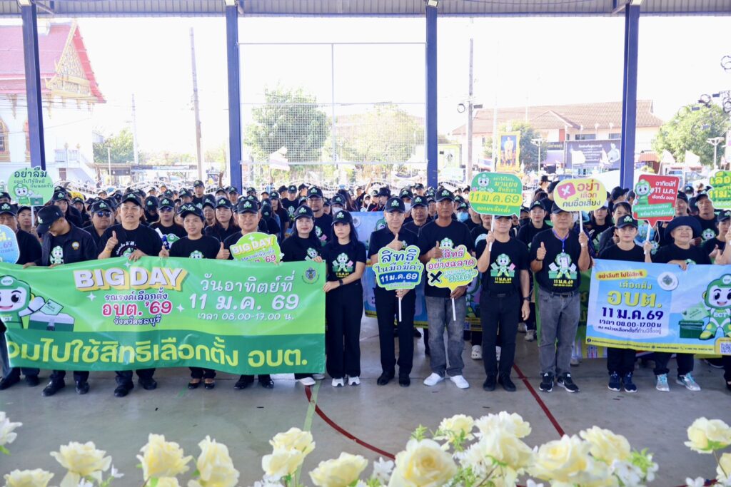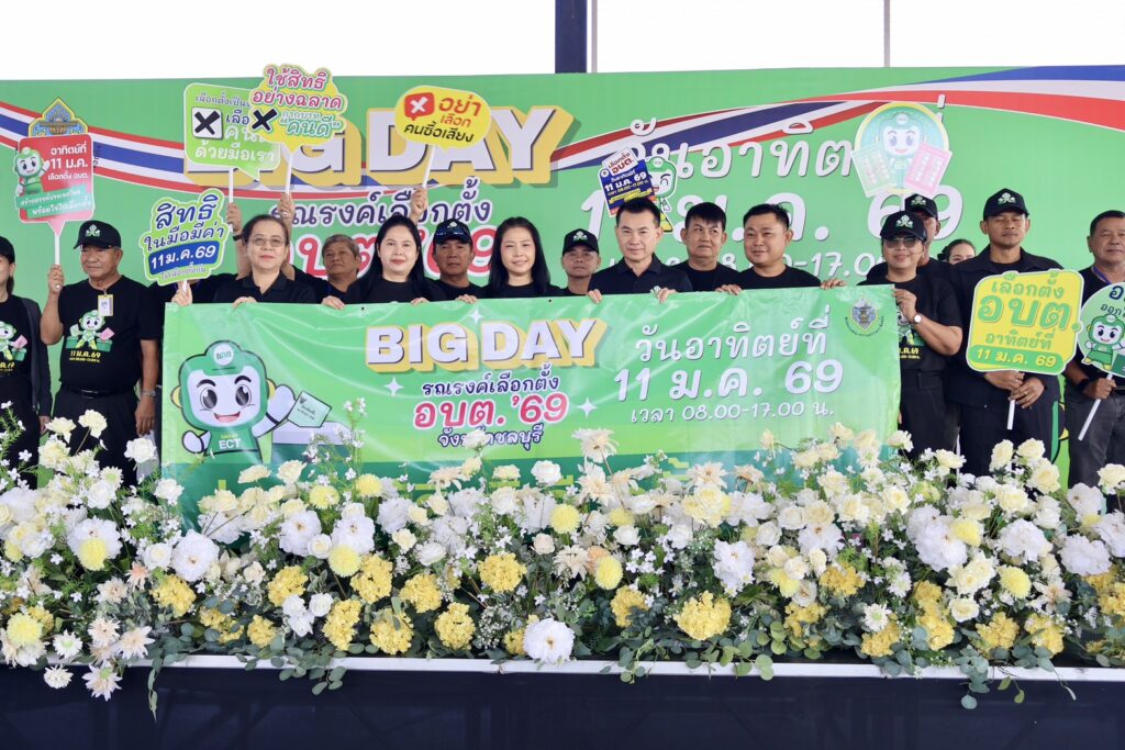 วันที่ 8 มกราคม 2569 เวลา 09.00 น. ที่โดมโรงเรียนวัดบ้านกลาง ตำบลหน้าพระธาตุ อำเภอพนัสนิคม จังหวัดชลบุรี นายพงศ์ธสิษฐ์ ปิจนันท์ รองผู้ว่าราชการจังหวัดชลบุรี เป็นประธานเปิดกิจกรรม “BIG DAY รณรงค์เชิญชวนประชาชนไปใช้สิทธิเลือกตั้งองค์การบริหารส่วนตำบล (อบต.)” โดยมี นางสาวมนัสนันท์ วิทนา ผู้อำนวยการสำนักงานการเลือกตั้งประจำจังหวัดชลบุรี, นายชยพล รัตนวิสุทธิกุล นายอำเภอพนัสนิคม, หัวหน้าส่วนราชการ, ผู้ตรวจการเลือกตั้งประจำจังหวัด และประชาชนจิตอาสา เข้าร่วมกิจกรรมเป็นจำนวนมาก