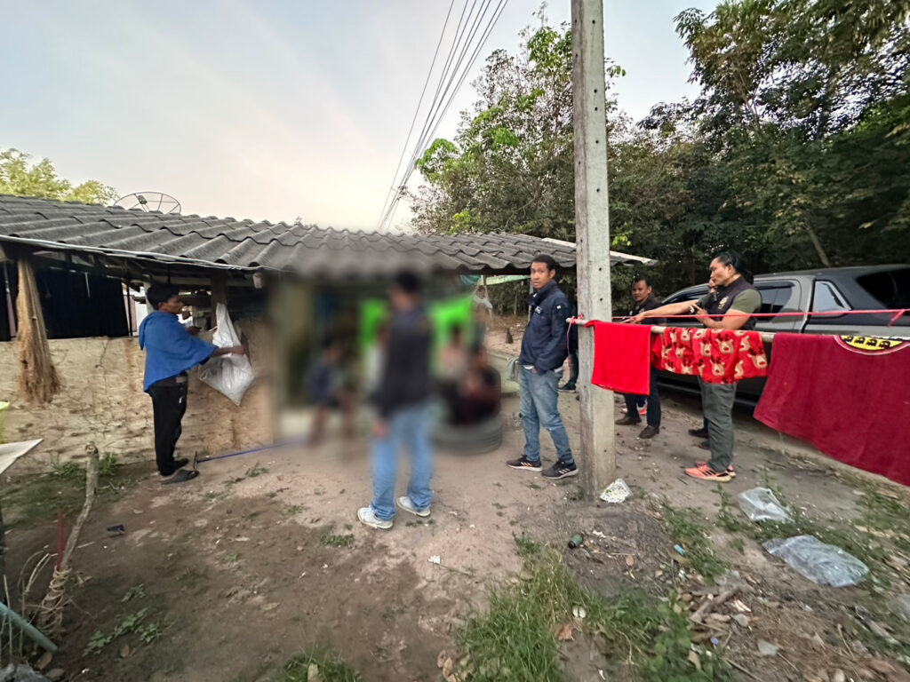 ร.ต.อ.อุดมศักดิ์ พรมแด, ร.ต.ต.ประวิทย์ พละศักดิ์ พร้อมกำลังเจ้าหน้าที่ตำรวจ เข้าตรวจค้นบ้านเลขที่ 327 หมู่ 5 ต.พนานิคม อ.นิคมพัฒนา จ.ระยอง หลังได้รับรายงานจากสายข่าวว่า มีแรงงานต่างด้าวชาวกัมพูชาลักลอบเข้ามาพักอาศัยเป็นครอบครัว