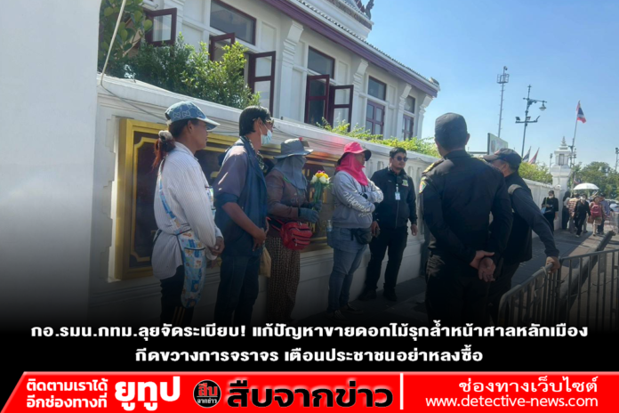 จากการตรวจสอบพบว่า มีบุคคลเข้ามาจำหน่ายดอกไม้บริเวณหน้าศาลหลักเมืองจริง โดยมีพฤติกรรมยื่นหรือยัดดอกไม้ให้กับประชาชนที่เดินทางมากราบไหว้สักการะ รวมถึงมีการชี้นำและเรียกร้องค่าใช้จ่าย อีกทั้งบางกรณียังพบการกีดขวางการจอดรถ สร้างความไม่สะดวกแก่ผู้มาสักการะและนักท่องเที่ยว