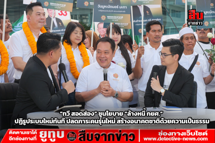 วันที่ 9 มกราคม 2569 — พ.ต.อ.ทวี สอดส่อง หัวหน้าพรรคประชาชาติ และแคนดิเดตนายกรัฐมนตรีของพรรค เปิดเผยนโยบายสำคัญ “ล้างหนี้ กยศ. ปฏิรูประบบใหม่ทันที” โดยชี้ว่า การศึกษาเป็นสิทธิขั้นพื้นฐานของมนุษย์ รัฐจึงต้องรับผิดชอบเปิดโอกาสทางการศึกษา ไม่ใช่สร้างภาระหนี้สินระยะยาวที่บั่นทอนโอกาสของเยาวชน