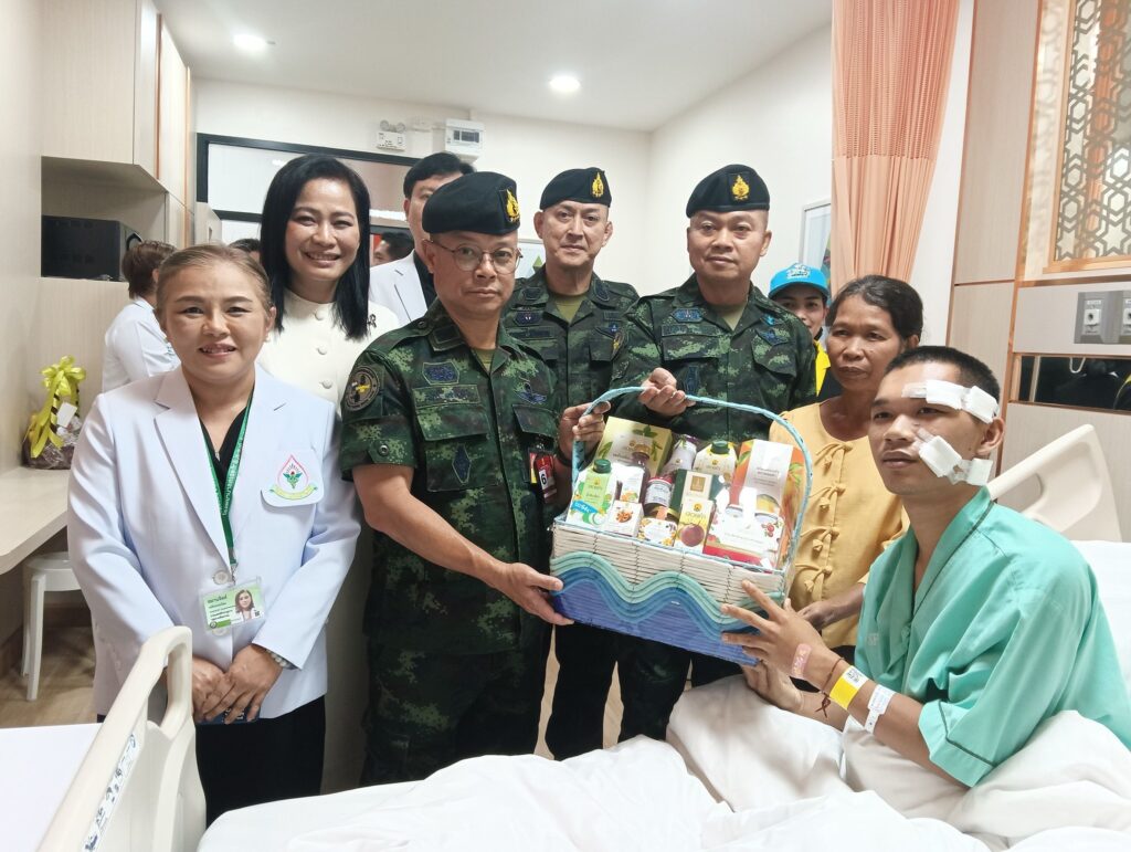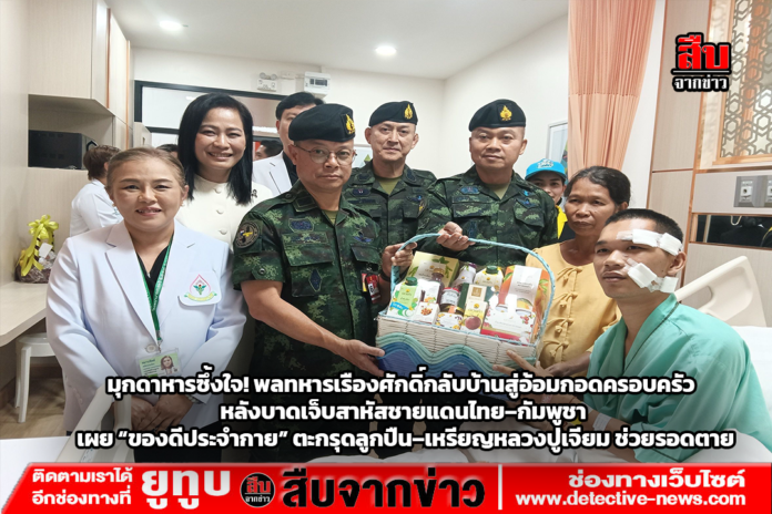 มุกดาหาร – พลทหาร เรืองศักดิ์ รัตนพันธ์ ทหารกล้าแห่งหน่วยเฉพาะกิจชายแดนไทย–กัมพูชา ที่ได้รับบาดเจ็บสาหัสจากเหตุปะทะระหว่างการปฏิบัติหน้าที่บริเวณช่องตาเฒ่า อำเภอกันทรลักษ์ จังหวัดศรีสะเกษ เมื่อช่วงต้นเดือนธันวาคม 2568 ล่าสุดได้กลับมาพักฟื้นที่บ้านเกิด เลขที่ 107 หมู่ 2 บ้านหนองน้ำเต้า ตำบลนาโสก อำเภอเมือง จังหวัดมุกดาหาร ท่ามกลางบรรยากาศแห่งความอบอุ่นของครอบครัวและชาวบ้านที่มาร่วมผูกข้อมือสู่ขวัญ