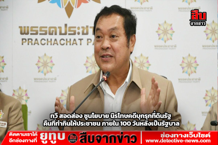 วันที่ 10 ม.ค.69 พ.ต.อ.ทวี สอดส่อง หัวหน้าพรรคประชาติ และแคนดิเดตนายกฯพรรคประชาชาติ เปิดเผยถึงนโยบายของพรรคประชาชาติ ว่า นอกเหนือจากการศึกษา และการปราบปรามยาเสพติด การปลดหนี้กยศ เพื่อสร้างสังคมที่ดี และคืนโอกาสการสร้างศักยภาพของประชาชนแล้ว เรายังมีอีกนโยบายก็คือการนิรโทษกรรมให้กับประชาชนที่ถูกดำเนินคดีบุกรุกที่ของรัฐ เพราะที่ผ่านมาหลายพื้นที่เกิดปัญหาที่รัฐประกาศ เพราะเรื่องดังกล่าวถือเป็นปัญหาระดับขาติ ประเทศไหนที่ปฏิรูปที่ดินไม่ได้ ประเทศนั้่นไม่มีสิทธิพัฒนา