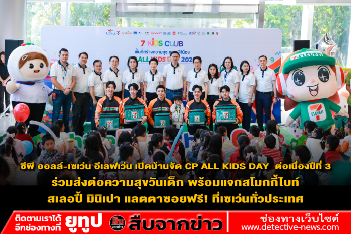 เดินหน้าส่งต่อรอยยิ้มและความสุขให้เด็กๆ ต้อนรับวันเด็กแห่งชาติปี 2569 ซีพี ออลล์-เซเว่น อีเลฟเว่น จัดกิจกรรมสุดอบอุ่น “CP ALL KIDS DAY 2026” เปิดพื้นที่สร้างความสุข ความสนุกผ่าน “7 KIDS CLUB” ชวนลูกหลานพนักงานซีพี ออลล์ บริษัทในกลุ่มฯ และ Store Business Partner (SBP) มาร่วมกัน Share Fun Share Care แบ่งปันทั้งความสนุกและความห่วงใย นอกจากนี้ยังมีพี่ๆ ชมรมจิตสาธารณะซีพี ออลล์ พนักงานเซเว่นร่วมส่งมอบความสุขให้น้องๆ ทุกภูมิภาค พร้อมชวนน้องๆ หนูๆ เลือกรับสโมกกี้ไบท์ สเลอปี้ มินิเปาไส้ครีม แลตตาซอย ซอยโย่ 100 มล. ฟรี ที่เซเว่น อีเลฟเว่น ทุกสาขาทั่วประเทศ