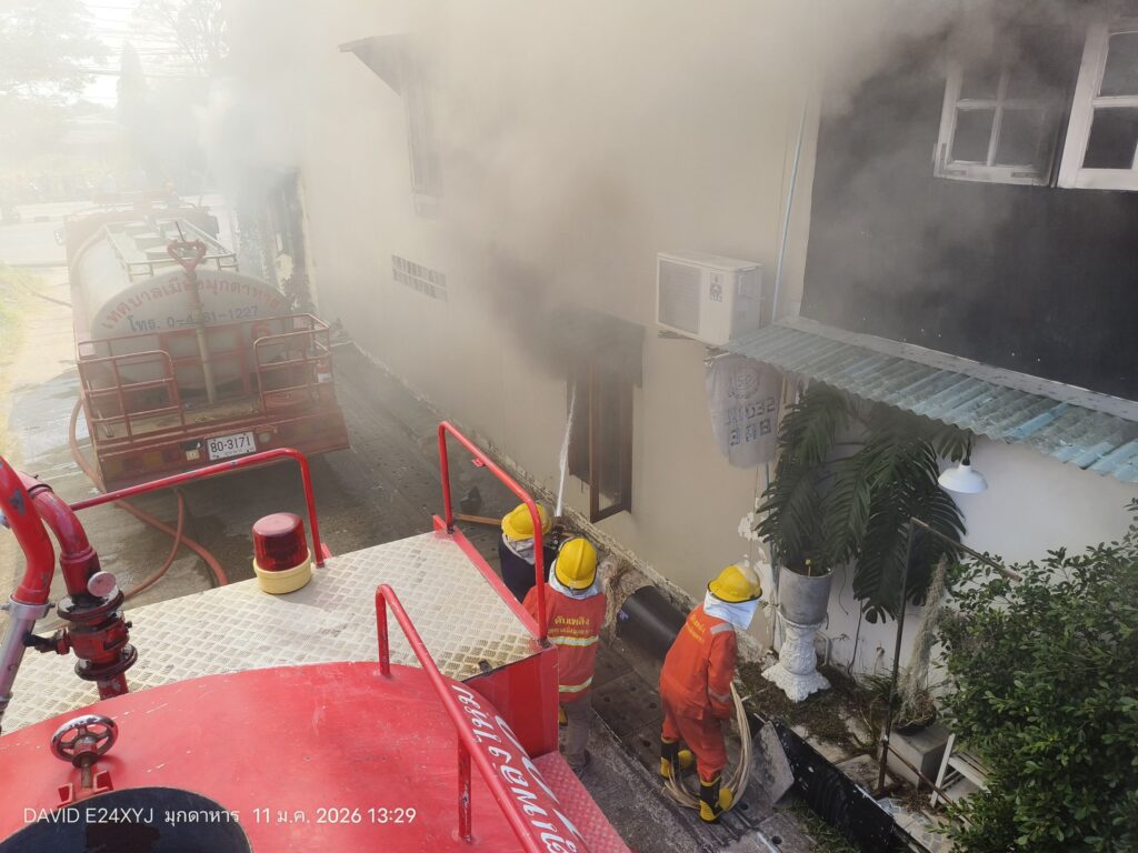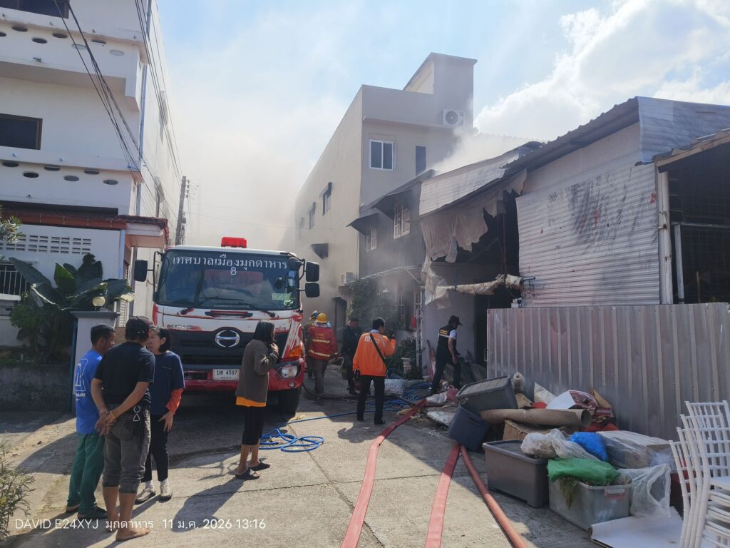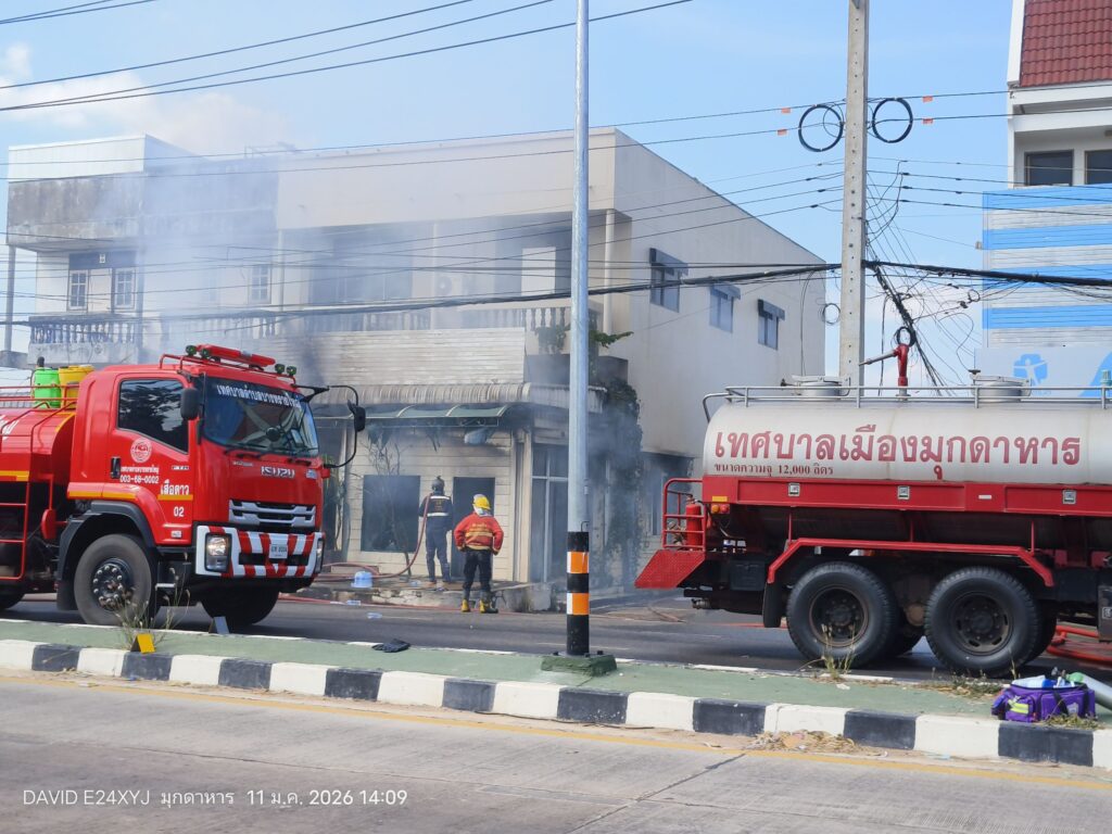เมื่อวันที่ 11 มกราคม 2569 เกิดเหตุเพลิงไหม้อาคารพาณิชย์ 3 ชั้น 2 คูหา เลขที่ 58 ถนนเมืองใหม่ เขตเทศบาลเมืองมุกดาหาร อำเภอเมือง จังหวัดมุกดาหาร ซึ่งเปิดเป็นร้านจำหน่ายดอกไม้ประดับและร้านเสริมสวย ของนางสุกัญญา ตั้งสุทธิวงศ์ เพลิงได้ลุกไหม้อย่างรวดเร็วบริเวณชั้น 1 และชั้น 2 ท่ามกลางกระแสลม