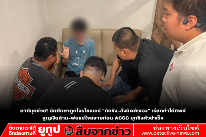 ศูนย์ต่อต้านการฉ้อโกงออนไลน์ (ACSC) ช่วยเหลือนักศึกษาชายถูกหลอกว่าเอี่ยวคดีฟอกเงิน บังคับขังตัวในห้อง-เรียกค่าไถ่ทิพย์จากผู้ปกครอง สูญเงินกว่า 1 ล้านบาท