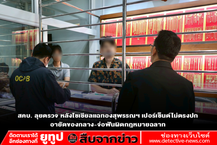 วันที่ 15 ม.ค.69 สำนักงานคณะกรรมการคุ้มครองผู้บริโภค (สคบ.) เปิดปฏิบัติการเชิงรุก ลงพื้นที่ตรวจสอบห้างทองชื่อดังในจังหวัดสุพรรณบุรี หลังผู้บริโภคร้องเรียนผ่านสื่อออนไลน์ว่าซื้อทองคำมาแล้วพบว่าเปอร์เซ็นต์ความบริสุทธิ์ไม่ตรงตามที่โฆษณา เบื้องต้นพบผิดกฎหมายฉลาก เตรียมขยายผลตรวจสอบเข้มเพื่อคุ้มครองสิทธิผู้บริโภค