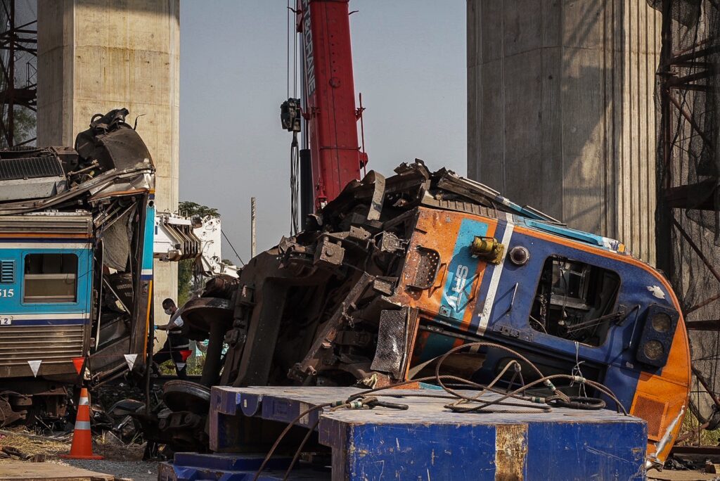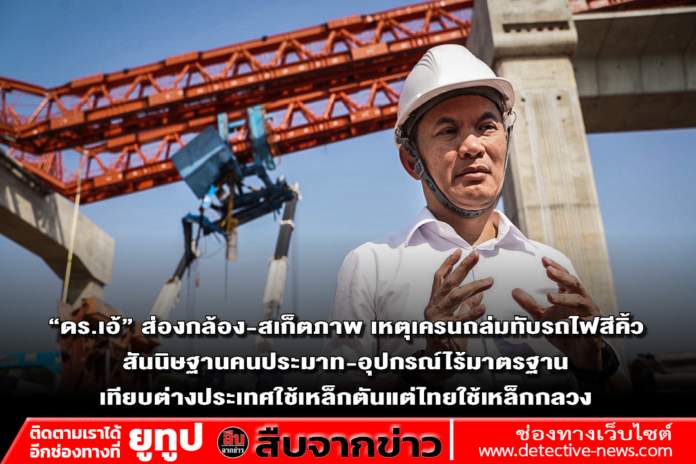 “ดร.เอ้” ส่องกล้อง-สเก็ตภาพ เหตุเครนถล่มทับรถไฟสีคิ้ว สันนิษฐานคนประมาท-อุปกรณ์ไร้มาตรฐาน เทียบต่างประเทศใช้เหล็กตันแต่ไทยใช้เหล็กกลวง แรงสั่นขณะรถไฟวิ่งไม่ใช่สาเหตุ เครนน่าจะเสียสมดุลก่อนรถไฟวิ่งผ่าน เสนอ 5 ข้อให้รัฐจี้ผู้รับเหมา เร่งดัน กม.ปลอดภัยสาธารณะ