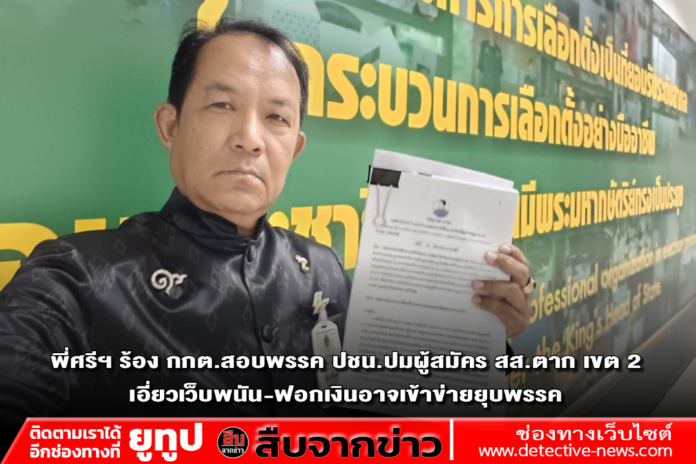 เวลา 10.00 น. วันที่ 16 ม.ค.69 นายศรีสุวรรณ จรรยา ผู้นำองค์กรรักชาติ รักแผ่นดิน ได้ยื่นคำร้องต่อคณะกรรมการการเลือกตั้ง(กกต.)และนายทะเบียนพรรคการเมือง เพื่อขอให้สืบสวนและสอบสวนพรรคประชาชนกรณีที่ตำรวจไซเบอร์จับนายรัชต์พงศ์ สร้อยสุวรรณ สมาชิกพรรคประชาชนและเป็นผู้สมัครรับเลือกตั้งเป็นสมาชิกสภาผู้แทนราษฎรจังหวัดตาก เขต 2 พรรคประชาชน และถูกตั้งข้อหาว่า“ร่วมกันจัดให้มีการเล่นการหรือทำอุบายล่อช่วยประกาศโฆษณา หรือชักชวนโดยทางตรงหรือทางอ้อมให้ผู้อื่นเข้าเล่นหรือเข้าพนัน ในการเล่นพนันทางสื่ออิเล็กทรอนิกส์ โดยไม่ได้รับอนุญาตจากเจ้าพนักงาน และสมคบฯฟอกเงิน และร่วมกันฟอกเงิน”