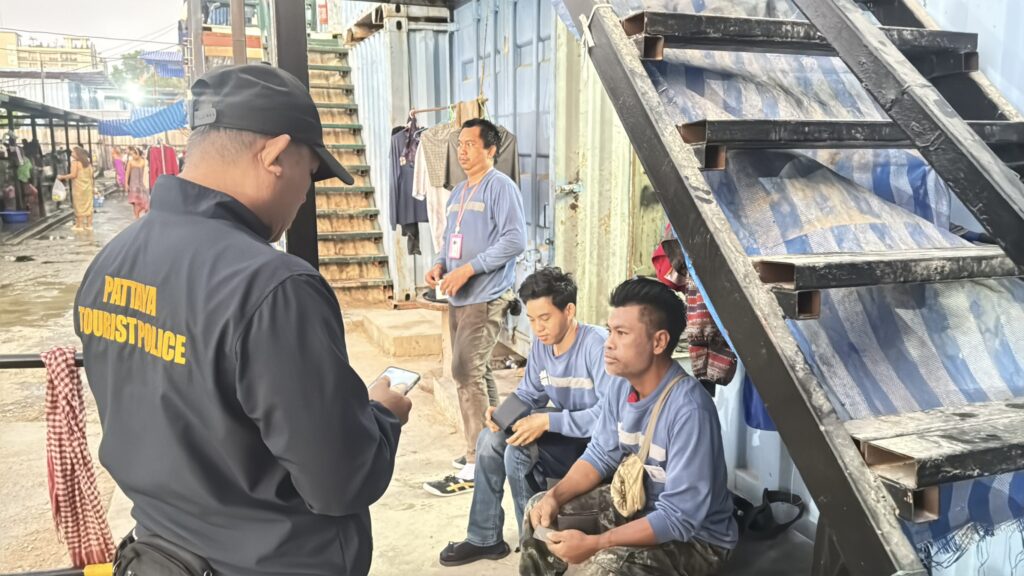ตำรวจตรวจคนเข้าเมืองชลบุรีผนึกกำลังตำรวจท่องเที่ยว บุกจู่โจมตรวจสอบแคมป์คนงานก่อสร้างขนาดใหญ่ใจกลางพัทยา สแกนเข้มแรงงานเมียนมา-กัมพูชากว่าครึ่งพัน พบส่วนใหญ่เอกสารครบแต่ตกม้าตายเรื่องระเบียบที่พักและการรายงานตัว สั่งปรับรวดเกือบ 200 ราย ย้ำมาตรการกวาดล้างเชิงรุกเพื่อความปลอดภัยของประชาชนและนักท่องเที่ยว