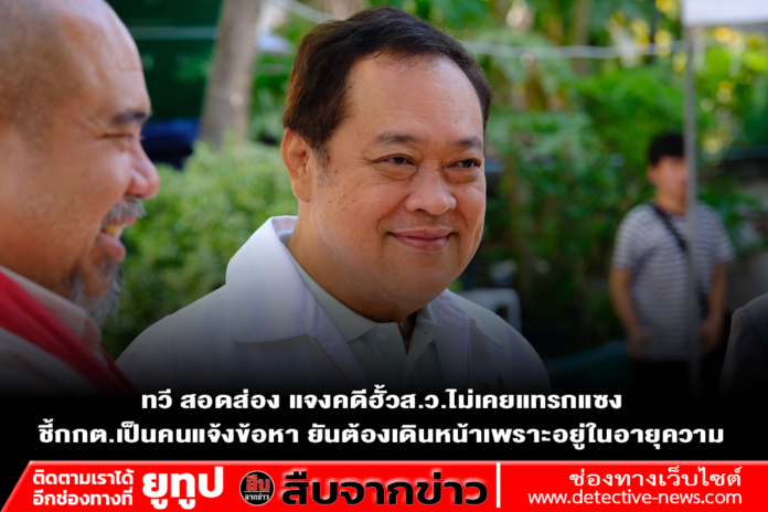พ.ต.อ.ทวี กล่าวว่า ต่อมามีเรื่องที่ส.ว.ไปร้องศาลรัฐธรรมนูญ เมื่อมีคำสั่งอะไรมาก็เคารพ แต่ระหว่างการพิจารณาคดี ตอนที่ตนไปไต่สวน เขาถามคนที่ไต่สวน ก็บอกว่าถูกกกต.แจ้งข้อกล่าวหา ทั้ง 200 กว่าคน แล้วตนจะไปแกล้งได้ยังไง กกต.เป็นองค์กรอิสระ ไม่รู้จักกับตนเลย ทุกอย่างขึ้นอยู่กับพยานหลักฐาน สำคัญคือเราเป็นรัฐมนตรี ต้องไม่ให้ใครแทรกแซงคดี ไม่แทรกแซงข้าราชการประจำ และตัวเราก็ต้องไม่ไปแทรกแซงด้วย ให้เขาทำตามข้อเท็จจริง และพยานหลักฐานให้เขาเดินอย่างมีศักดิ์ศรี และมันเป็นเรื่องที่อยู่ในอายุความ ก็ต้องเดินต่อ จะต้องไม่ให้ใครอยู่เหนือกฎหมายทุกเรื่อง
