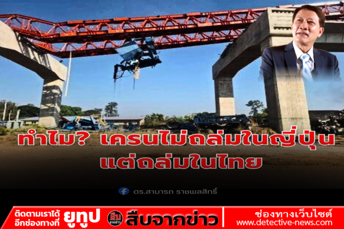 ญี่ปุ่นก็สร้างรถไฟความเร็วสูง ทางด่วน รถไฟฟ้า หลายโครงการพร้อมกัน ใช้เครนจำนวนมาก ทำงานแข่งกับเวลาไม่ต่างจากเรา แต่แปลกไหม… ข่าวเครนถล่มในญี่ปุ่นแทบไม่เคยปรากฏ ขณะที่ในไทย เราเห็นภาพเดิมซ้ำๆ เครนล้ม คนเจ็บ คนตาย แล้วก็เงียบ