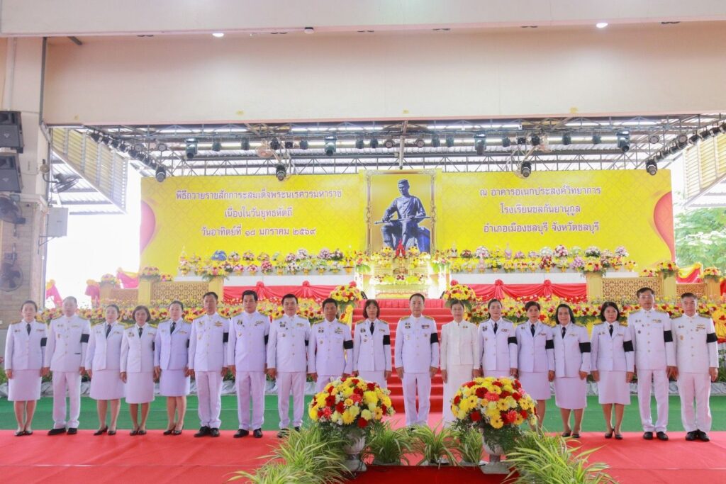 วันนี้ (18 มกราคม 2569) เวลา 08.30 น. ณ อาคารอเนกประสงค์วิทยาการ โรงเรียนชลกันยานุกูล อำเภอเมืองชลบุรี จังหวัดชลบุรี นายนริศ นิรามัยวงศ์ ผู้ว่าราชการจังหวัดชลบุรี เป็นประธานในพิธีถวายเครื่องราชสักการะสมเด็จพระนเรศวรมหาราช เนื่องในวันยุทธหัตถี ประจำปี 2569 เพื่อรำลึกถึงพระมหากรุณาธิคุณและพระเกียรติคุณอันยิ่งใหญ่ของสมเด็จพระนเรศวรมหาราช ผู้ทรงกอบกู้เอกราชของชาติไทยและสร้างความมั่นคงแก่แผ่นดิน โดยมีนางสุพิณญา นิรามัยวงศ์, นายชัยพร แพภิรมย์รัตน์ รองผู้ว่าราชการจังหวัดชลบุรี, นายอดิเรก อุ่นโอสถ รองผู้ว่าราชการจังหวัดชลบุรี, ข้าราชการ, ทหาร, ตำรวจ, องค์กรภาครัฐ, ภาคเอกชน, นักเรียน, นักศึกษา และประชาชนชาวจังหวัดชลบุรี เข้าร่วมพิธีอย่างพร้อมเพรียง