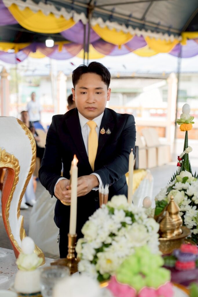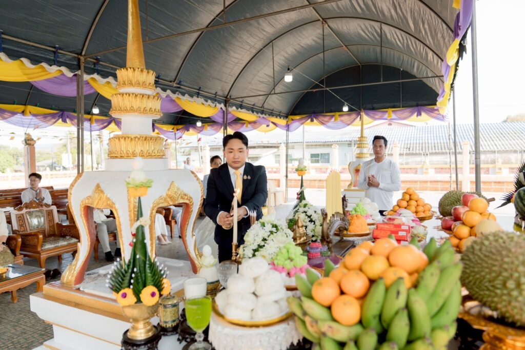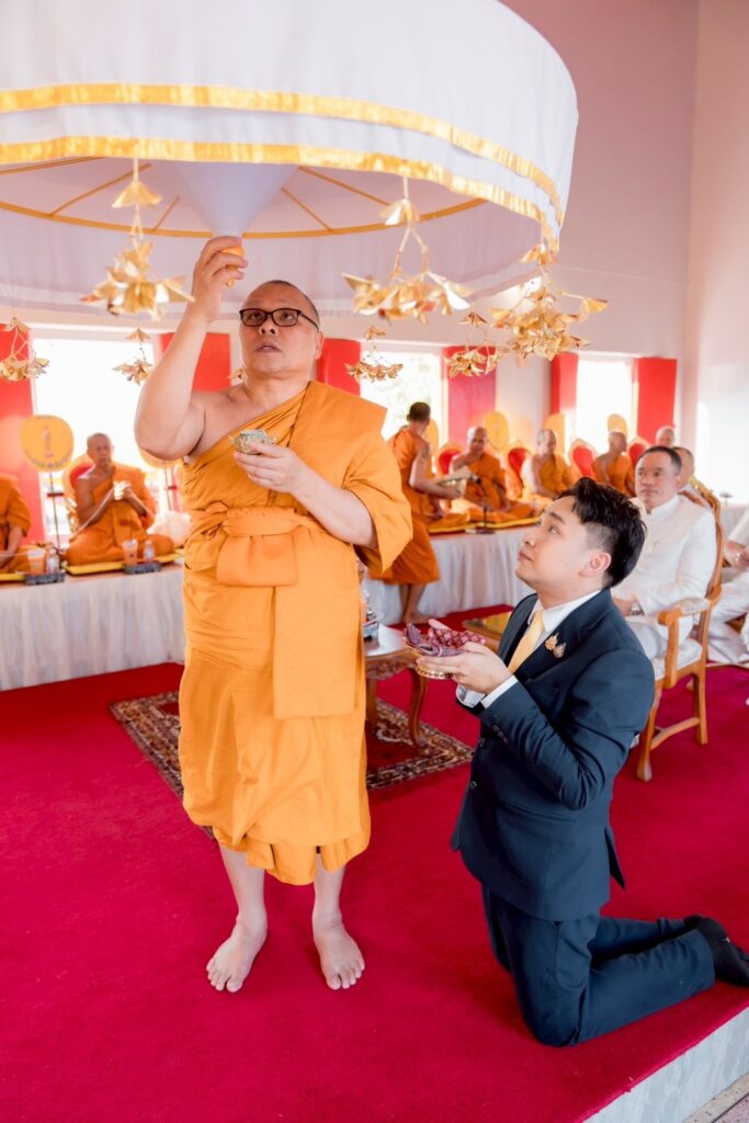 ลำดับพิธีเริ่มจากประธานในพิธีจุดเทียนธูปบูชาพระรัตนตรัย กล่าวคำบูชาพระรัตนตรัย อาราธนาเบญจศีล พระสงฆ์ให้ศีล จากนั้นประกอบพิธีเจริญพระพุทธมนต์และเจริญชัยมงคลคาถา ต่อด้วยพิธียกฉัตรพระประธานพระอุโบสถ “หลวงพ่อเพชร” โดยพระเดชพระคุณพระราชธรรมเมธี นายธวัชชัย นามสมุทร และ ดร.ชานนท์ อยู่เจริญ พร้อมคณะเจ้าภาพร่วมถวายเครื่องไทยธรรม พระสงฆ์อนุโมทนา ก่อนที่ประธานในพิธีและคณะเจ้าภาพจะกรวดน้ำรับพร เป็นอันเสร็จสิ้นพิธีด้วยความเป็นสิริมงคล