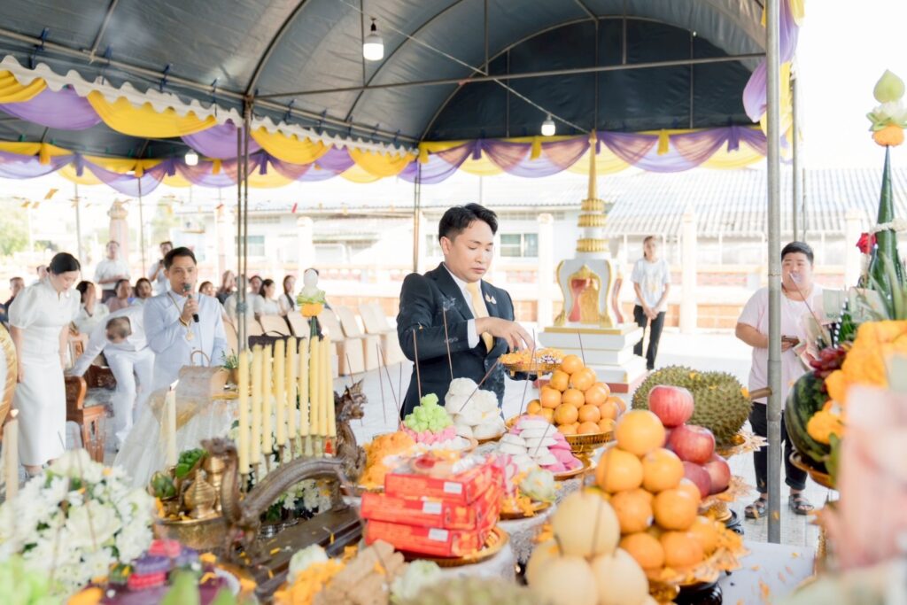 รวมทั้งหัวหน้าส่วนราชการและพุทธศาสนิกชนจำนวนมากเข้าร่วมพิธีอย่างพร้อมเพรียง