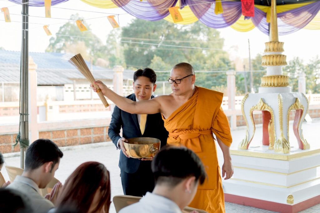 พิธีฝ่ายสงฆ์ได้รับความเมตตาจาก พระเดชพระคุณพระราชธรรมเมธี (ป.ธ.9, ดร.) เจ้าคณะจังหวัดจันทบุรี เจ้าอาวาสวัดโค้งสนามเป้า เป็นประธานฝ่ายสงฆ์ ขณะที่ฝ่ายฆราวาสมี นายธวัชชัย นามสมุทร รองผู้ว่าราชการจังหวัดจันทบุรี เป็นประธานในพิธี พร้อมด้วย