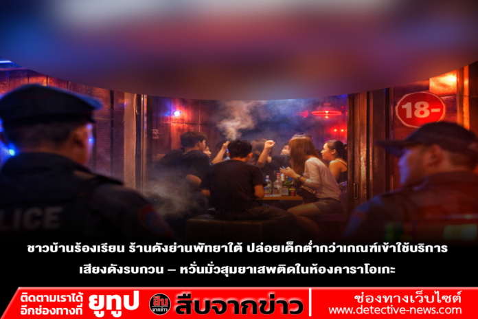 เมื่อช่วงค่ำถึงดึกของคืนที่ผ่านมา พี่น้องประชาชนที่อาศัยอยู่บริเวณใกล้เคียงร้าน “คาราโอเกะ” ย่านพัทยาใต้ จังหวัดชลบุรี ได้รับผลกระทบจากเสียงดังเอะอะโวยวายภายในร้านดังกล่าว สร้างความเดือดร้อนรำคาญต่อผู้อยู่อาศัยในละแวกใกล้เคียง โดยเฉพาะผู้สูงอายุ เด็ก และครอบครัวที่ต้องการความสงบในช่วงเวลากลางคืน