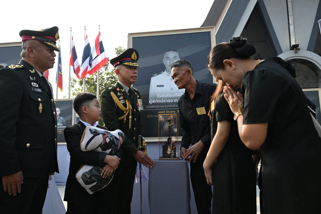 ผู้บัญชาการทหารสูงสุด ยังได้มอบของที่ระลึก และพูดคุยให้กำลังใจครอบครัววีรชนทั้ง 42 ครอบครัว เริ่มตั้งแต่ครอบครัว “ร้อยตรีวรัญชิต ยวงสุวรรณ” ซึ่งเป็นทหารคนแรกที่สละชีพจากเหตุปะทะชายแดนไทย-กัมพูชา ในพื้นที่อำเภอกันทรลักษ์ จังหวัดศรีสะเกษเมื่อวันที่ 24 กรกฎาคม 2568
