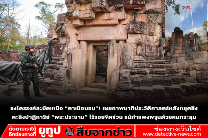 เปิดภาพ “ปราสาทตาเมือนธม” หลังหยุดยิงเกือบเดือน ธงไตรรงค์ปักเด่น ตัวปราสาทยังสมบูรณ์เหมือนเดิม เผยปาฏิหาริย์พระพุทธรูปไม่ถูกสะเก็ดระเบิด ทั้งที่บริเวณกำแพงหน้าองค์พระเป็นรูพรุน