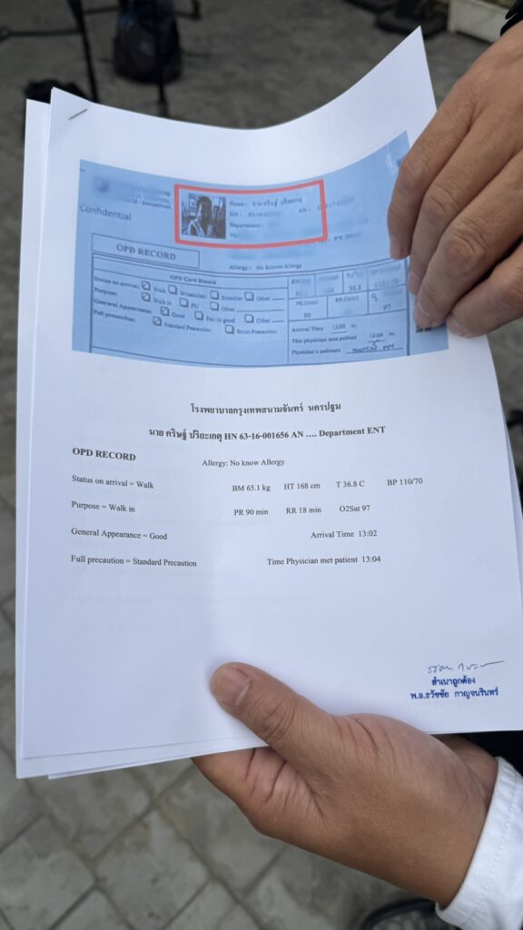 นายสัญญาภัชระ ทนายความ เผยว่า ก่อนหน้านี้วันที่ 7 มกราคม 2569 มีนักข่าวท่านหนึ่งได้โพสต์เวชระเบียนการตรวจร่างกายของ พ.ต.ท.คริษฐ์ ซึ่งต่อมามีความเห็นจาก นพ.ธวัชชัย กาญจนรินทร์ อดีตศัลยแพทย์โรงพยาบาลพระมงกุฏ ตั้งข้อสังเกตและข้อพิรุธจากเวชระเบียนว่า พ.ต.ท.คริษฐ์ เดินทางไปพบแพทย์แบบ OPD อาการเหมือนคนปกติ ตรวจสัญญาณชีพจร / ความดัน /อัตราการการหายใจ ปกติ ตามบันทึกผู้ป่วยบอกว่ามาด้วยอาการหูอื้อข้างซ้ายหลังจากบาดเจ็บมา 2วัน รู้สึกมึนงงโครงเครงเล็กน้อย ซึ่งหลังจากแพทย์ตรวจร่างกายก็พบว่าแก้วหูซ้ายทะลุ ส่วนแก้วหูขวาปกติ พร้อมลงรหัสโรคH72.8 แต่ท่านข้อสังเกตว่าหากบาดเจ็บเฉียบพลันแพทย์จะต้องลงรหัส SO 9.2 แทน