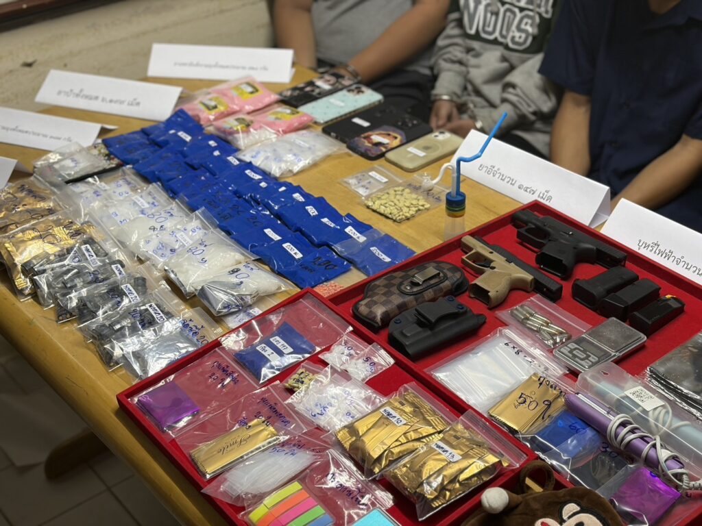 อาวุธปืนที่ตรวจยึดได้เป็นปืนพกกึ่งอัตโนมัติ ขนาด 9 มม. จำนวน 2 กระบอก พร้อมซองกระสุนและเครื่องกระสุน รวม 10 นัด สะท้อนให้เห็นถึงความอันตรายของเครือข่ายนี้ที่ไม่เพียงค้ายาเสพติด แต่ยังมีอาวุธไว้ในครอบครอง