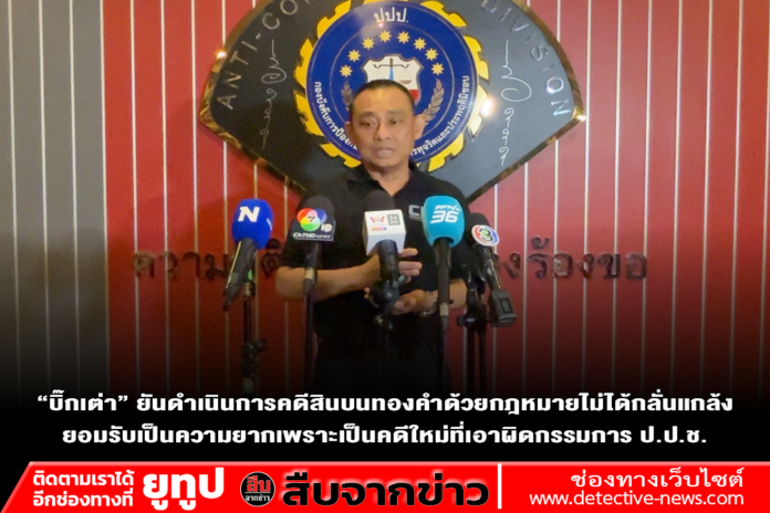 “บิ๊กเต่า” ยันดำเนินการคดีสินบนทองคำด้วยกฎหมายไม่ได้กลั่นแกล้ง ยอมรับเป็นความยากเพราะเป็นคดีใหม่ที่เอาผิดกรรมการ ป.ป.ช. ย้ำจะดำเนินการให้เร็วที่สุดหลังรับสำนวนกลับจาก ป.ป.ช. ว่าจะดำเนินการอย่างไร